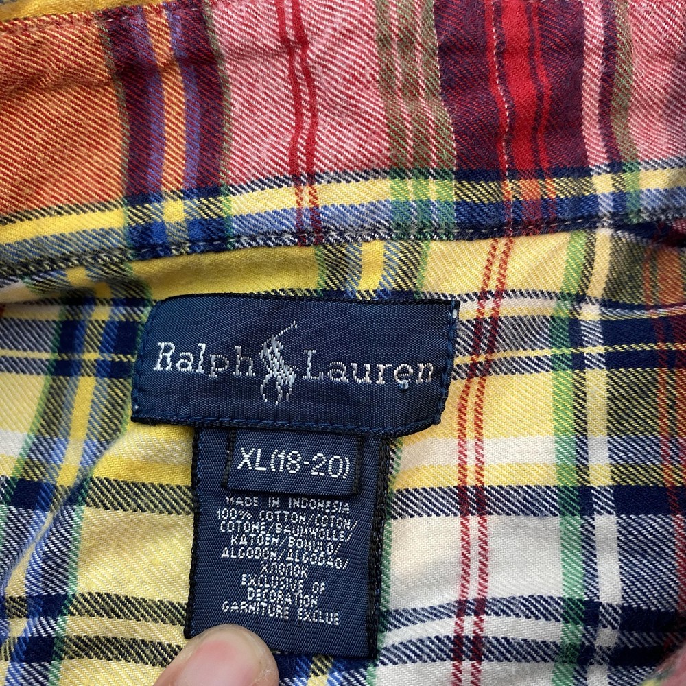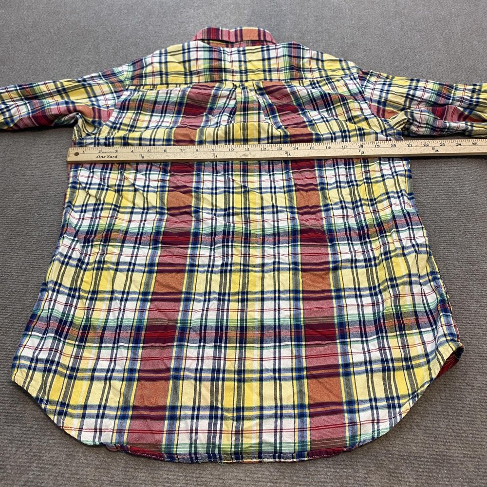 Light wear with minor signs of use from normal handling. No obvious stains, holes, or tears observed. Fabric shows some wrinkling from storage. All buttons intact and functioning; embroidery and collar present well. Item: Long sleeve button down shirt Pattern/Color: Multicolor madras plaid with classic RL styling Material: 100% Cotton Size on tag: Youth XL (18-20) Country of origin: Made in Indonesia Features: Button-down collar, front button closure, button cuffs, curved hem Features: Left chest pocket with embroidered Polo pony logo Notes: Measurements are shown in the photos for reference; please review for fit Special notes: Colors may vary slightly due to lighting and screen settings