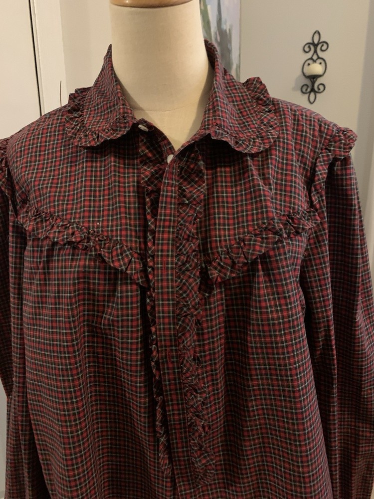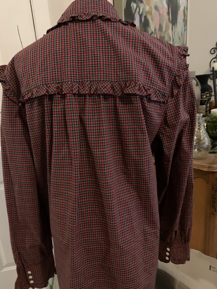 Ralph Lauren Women’s Plaid Ruffle Trim Button Down Shirt Top Size XL