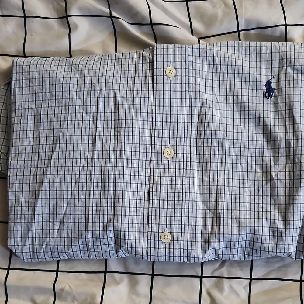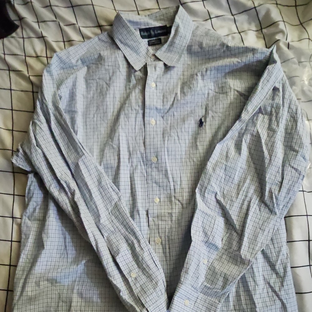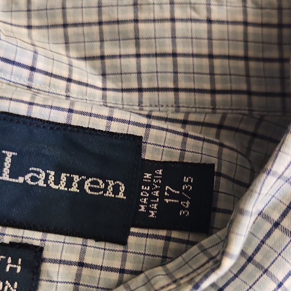 Ralph Lauren Yarmouth Blue White Check 100% Cotton Men's Dress Shirt 17 34/35