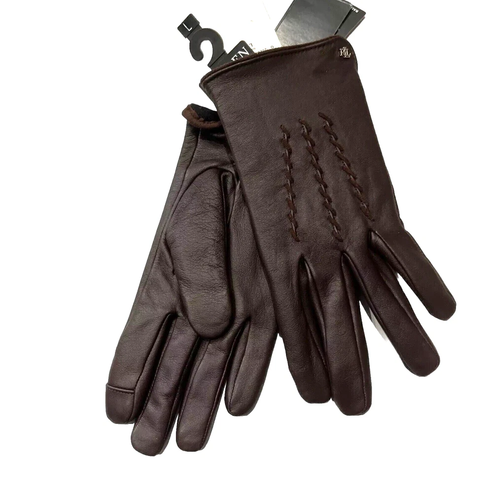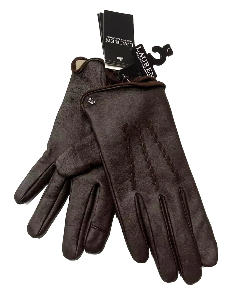 Ralph Lauren women's Leather Whipstitch Touch Gloves size: Large color: Country Brown Touch technology Thinsulate micro-fleece lined whipstitch detail on the top Logo detail at the top Touch technology Leather G194