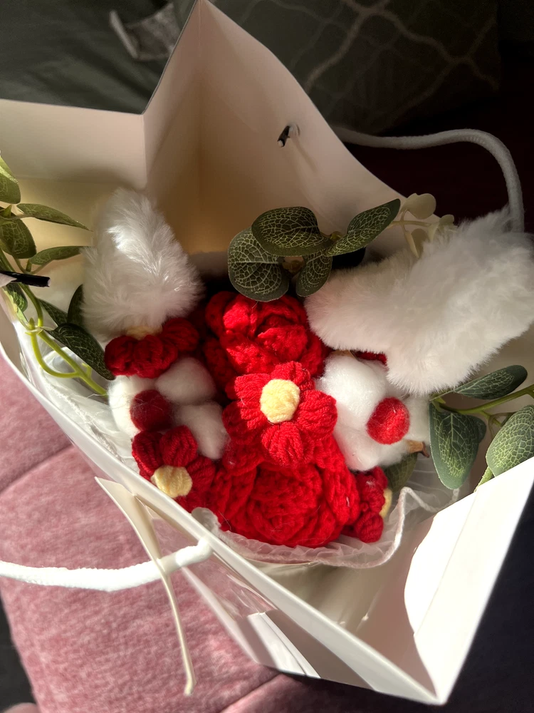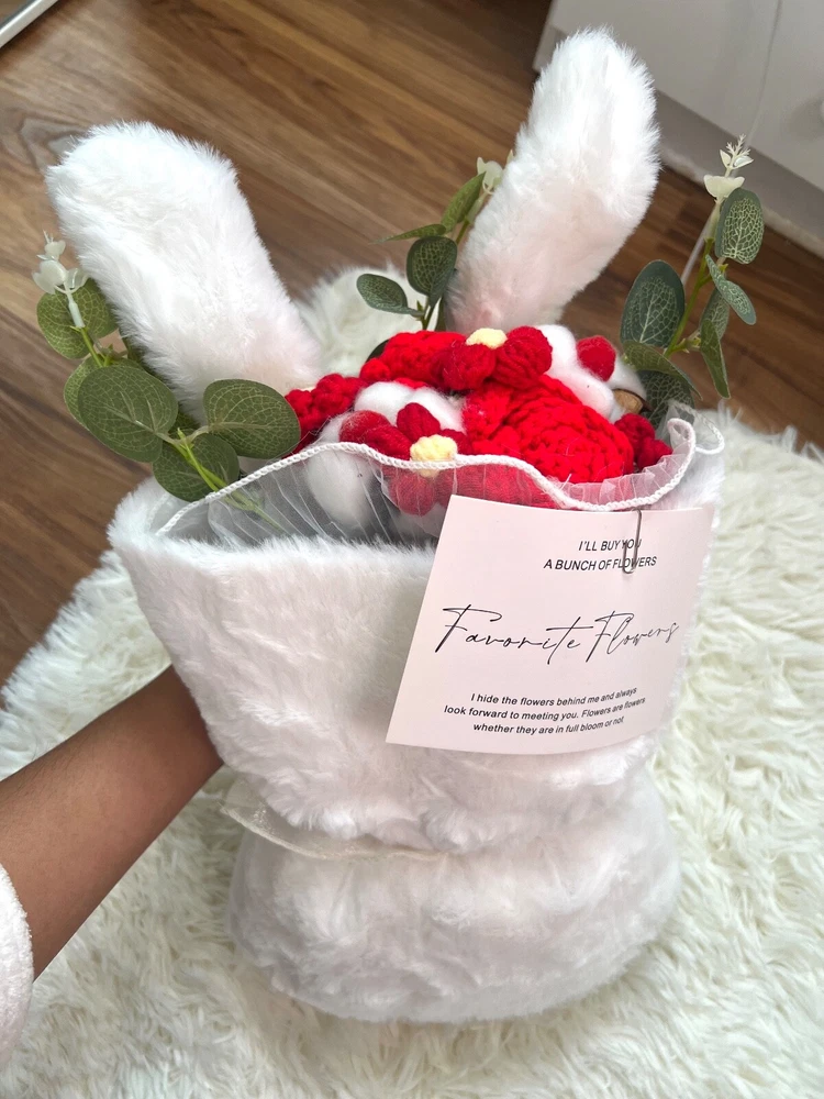 Ramo de flores de ganchillo, día de San Valentín, pareja, orejas de conejo crochet flores boq