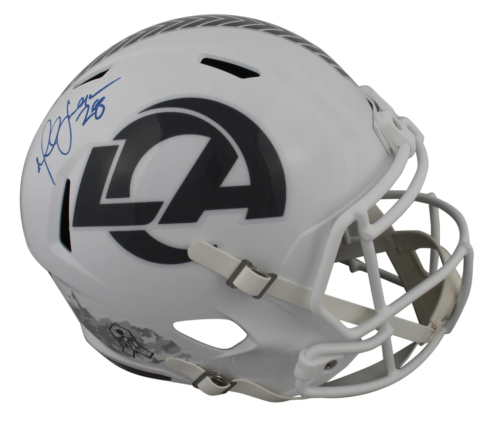Press Pass Collectibles Football Trading Cards Photographs Framed Photographs Footballs Jerseys Framed Jerseys Game Used Helmets Mini Helmets Index Cards Lithographs Magazines Other Baseball Trading Cards Photographs Framed Photographs Baseballs Bats Jerseys Game Used Helmets Index Cards Lithographs Magazines Other Basketball Trading Cards Photographs Framed Photographs Jerseys Framed Jerseys Basketballs Game Used Floors Index Cards Magazines Other Hockey Trading Cards Photographs Jerseys Framed Jerseys Game Used Hockey Sticks Pucks Index Cards Magazines Other Boxing Photographs Framed Photographs Gloves Trunks Other Golf Photographs Balls Flags Index Cards Other Misc Sports MMA Olympic Racing Soccer Tennis Wrestling Other Celebrity Photographs Framed Photographs Books Magazines Posters Other Music Photographs Framed Photographs Performance Used Albums CDs Drum Heads Drum Sticks Guitar Posters Programs Other Historical Photographs Documents Military Space Other Presidential Photographs Baseballs Books Documents Magazines Other All Inventory 259.99 This Autographed Alternate 2024 Salute To Service III Riddell Full Size Speed Rep Helmet has been Personally Signed by Marshall Faulk of the St. Louis Rams. This item is 100% Authentic to include a hologram by Beckett Authentication Services. This item may come with the new Beckett Authentication hologram that has a scannable QR code rather than the traditional COA. If you would like to have a COA, you are welcome to reach out to Beckett for a printed certification once you receive your item. This is a BAS Witnessed Protection Program item which means a Beckett Authentication Service representative was present when this item was being signed. We conducted an autograph signing with Marshall Faulk where multiples of the same item were signed. While the photographs are representative of this item, the size, placement and strength of the signature may vary. Each item is hand signed, therefore, each autograph is unique. This item can be verified through BAS Witnessed. Product Details Signed By: Marshall Faulk Additional Info: St. Louis Rams Authenticated By: Beckett Details: The PPC Guarantee: Press Pass Collectibles (PPC) offers authentic in-person autographs that include a 100% money-back lifetime guarantee regarding the autograph's authenticity. Our items are sourced from PPC autograph signings or direct from leading suppliers of authentic memorabilia. The companies that authenticate these items include Beckett Authentication Services (BAS), Professional Sports Authenticator (PSA/DNA), James Spence Authentication (JSA), Steiner Sports, Upper Deck, Fanatics, Mounted Memories, and Tri-Star Productions. All autographed items come with a Certificate of Authenticity (COA) from these suppliers that includes a tamper proof hologram affixed to the item. Shipping: Press Pass Collectibles ships all orders via UPS, FedEx, or USPS within 24 business hours. We will combine shipping ! Additional items are typically $1 - $2 each, but cost may vary depending on dimensions and weight. Please contact us for a combined invoice prior to making your paymen t. PPC Exclusives: Press Pass Collectibles has exclusive autograph relationships with over 50 professional athletes and celebrities including Magic Johnson, Chevy Chase, Travis Kelce, DK Metcalf, Justin Jefferson, Randy Moss, Kyler Murray, Adrian Peterson, Baker Mayfield, Ray Lewis, George Kittle, Dak Prescott, Jerome Bettis, Chase Claypool, Deion Sanders, Jack Lambert, Mean Joe Greene, T.J. Watt, J.J. Watt, Tony Dorsett, Devin White, Tony Gonzalez, Emmitt Smith, Michael Irvin, Jason Witten, Jared Allen, Kurt Warner and more! Shop our entire collection