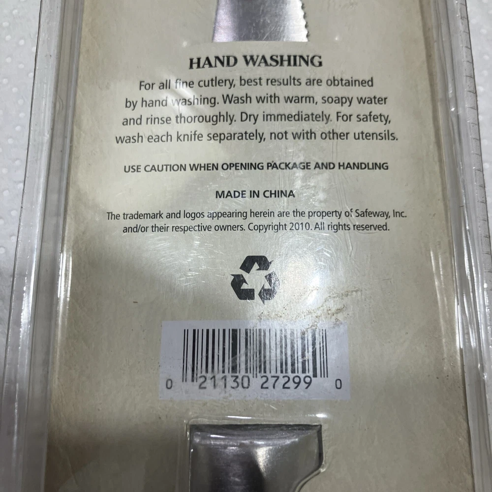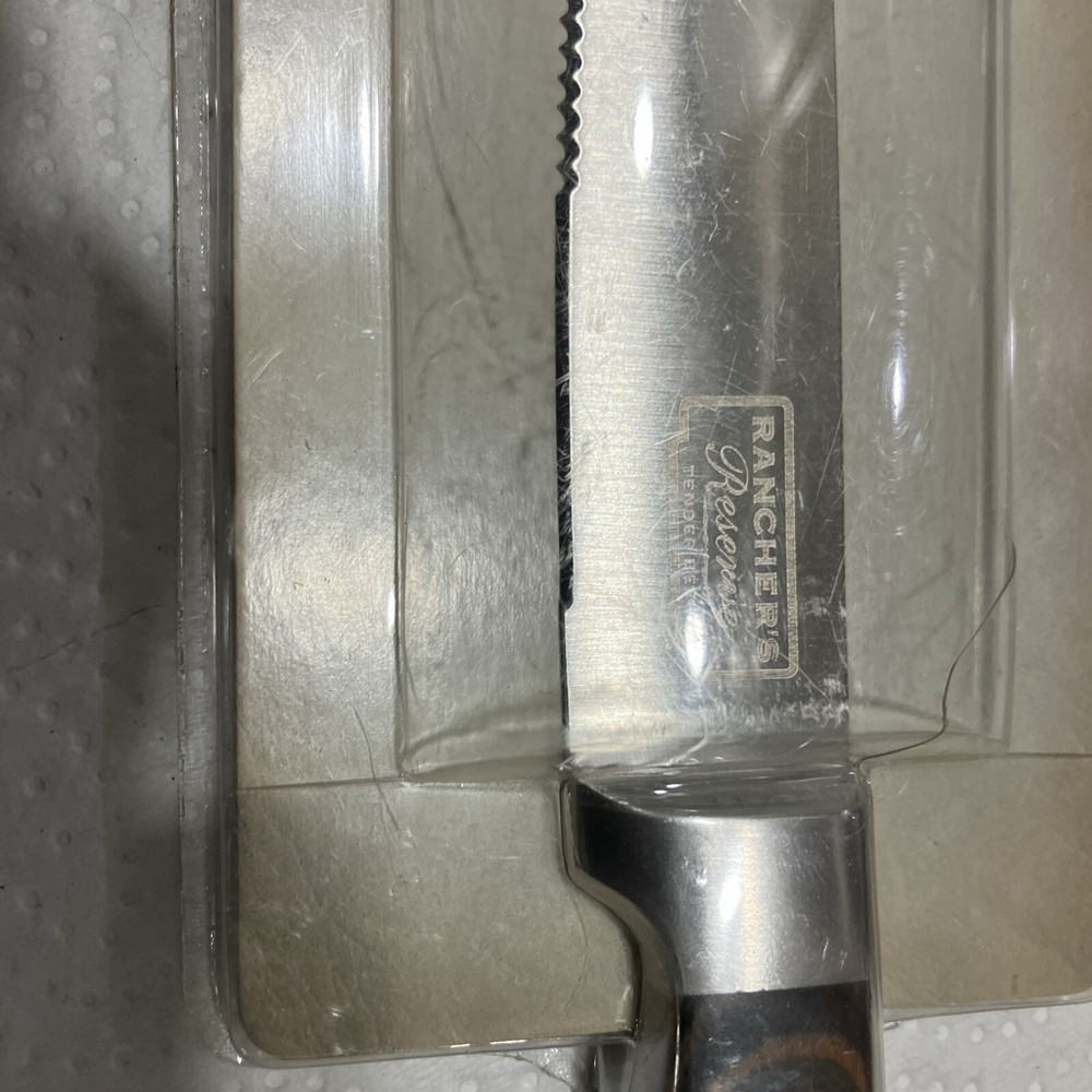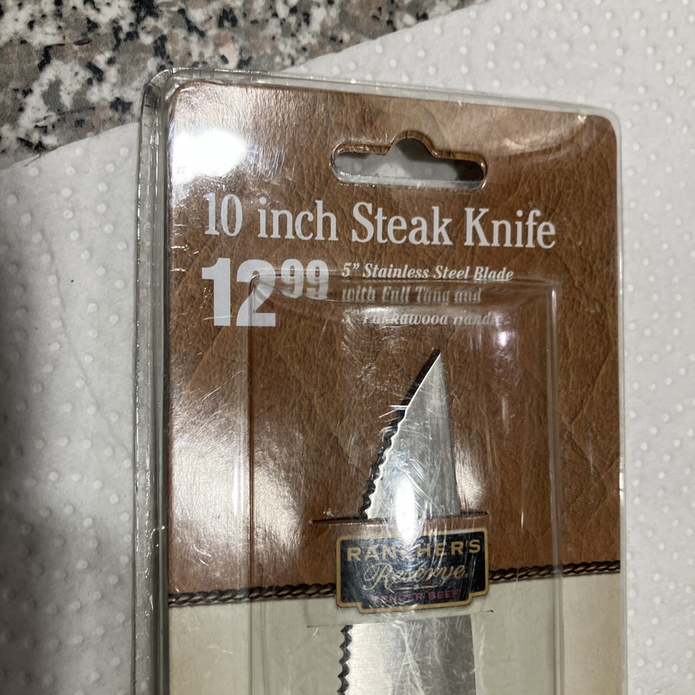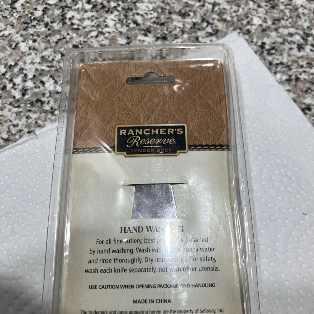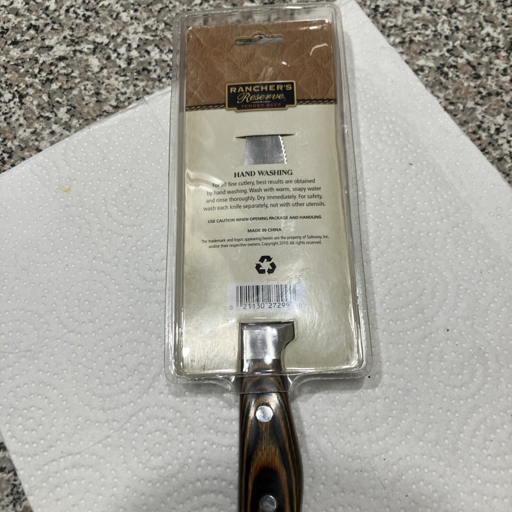Color:BrownType:Steak KnifeBrand:Rancher's ReserveHandle Material:PakkawoodNumber of Items in Set:1Blade Length:5 inSet Includes:Steak Knifegtin13:0021130272990Material:Stainless SteelBlade Edge:SerratedUPC:0021130272990Country/Region of Manufacture:ChinaFood Compatibility:MeatFeatures:Hand Wash Only