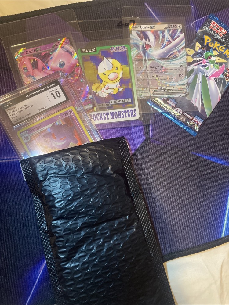 Character: Charizard, Gengar, Mewtwo Card Size: Standard Number of Cards: 6 Features: 1st Edition, Full Art, Promo Manufacturer: Mystery Set: Random Game: Pokémon TCG Card Type: Pokémon Finish: Holo Language: English & Japanese