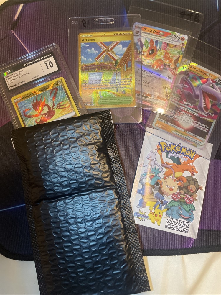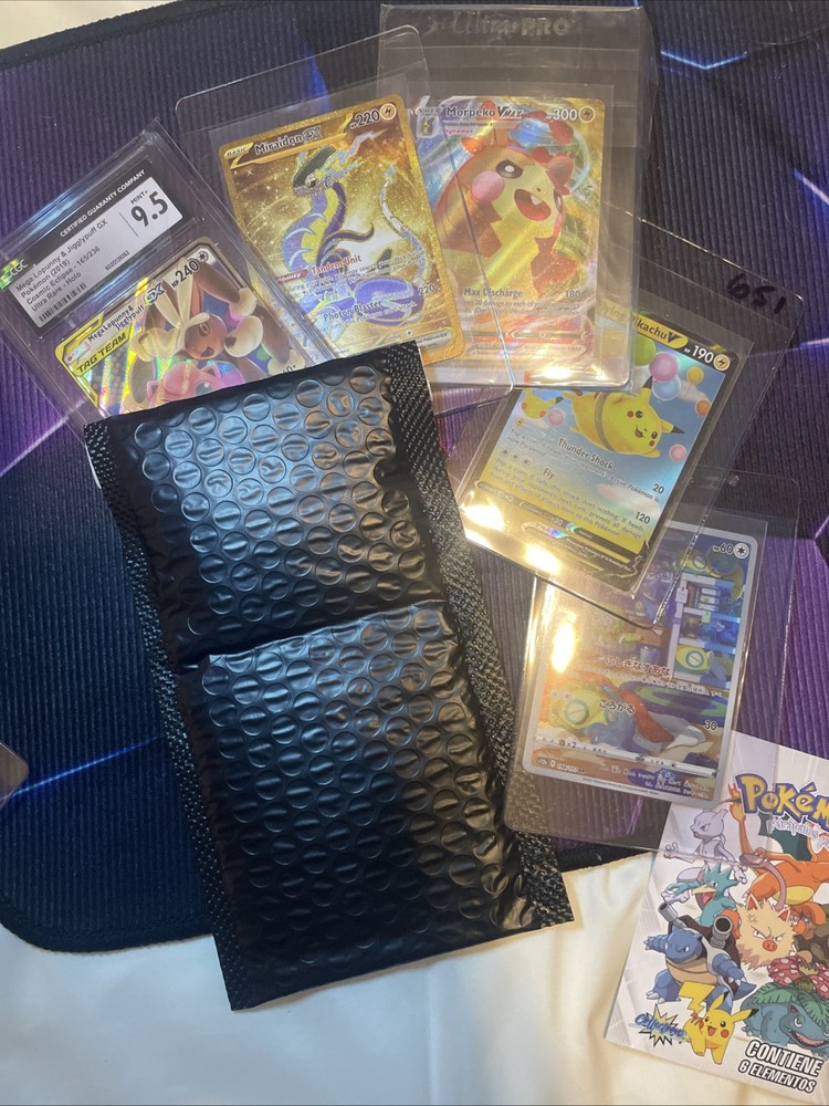 All mystery bags include a CGC or PSA slab mint 9 ,9.5,10, or pristine 10 graded Pokemon card as well as 4 or 5 chase ir hit cards usually full arts SIRs RRs etc no junk cards all mint / new condition some vintage hits in some bags as well as one random sealed pack from different editions and years. You will always get your money’s worth regardless because the bags are all higher value than the price I have them listed for. So give it a try and I am certain you will be happy with your mystery slab+ bag! 30 bags available *** mystery prize card pulls inside every order as well*** you can win extra Pokemon stuff by pulling winning lottery cards out of your order pack when you receive it. *** some of the “X-TRA “ prizes are detailed as : you won an extra slab with next purchase! Or You won free binder, you won ETB etc etc. so it’s another way to add fun to the mystery package. Enjoy and catch em all !!!