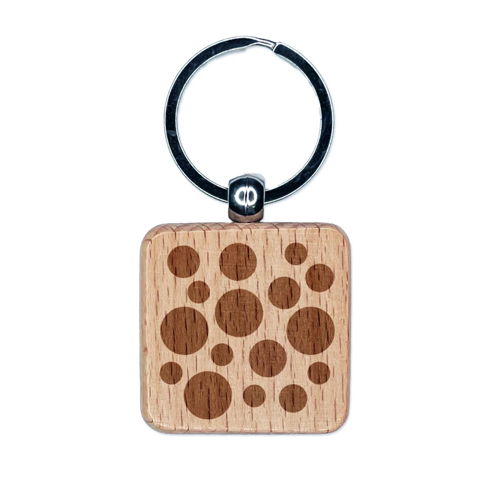 Random Spots Engraved Wood Square Keychain Tag Charm