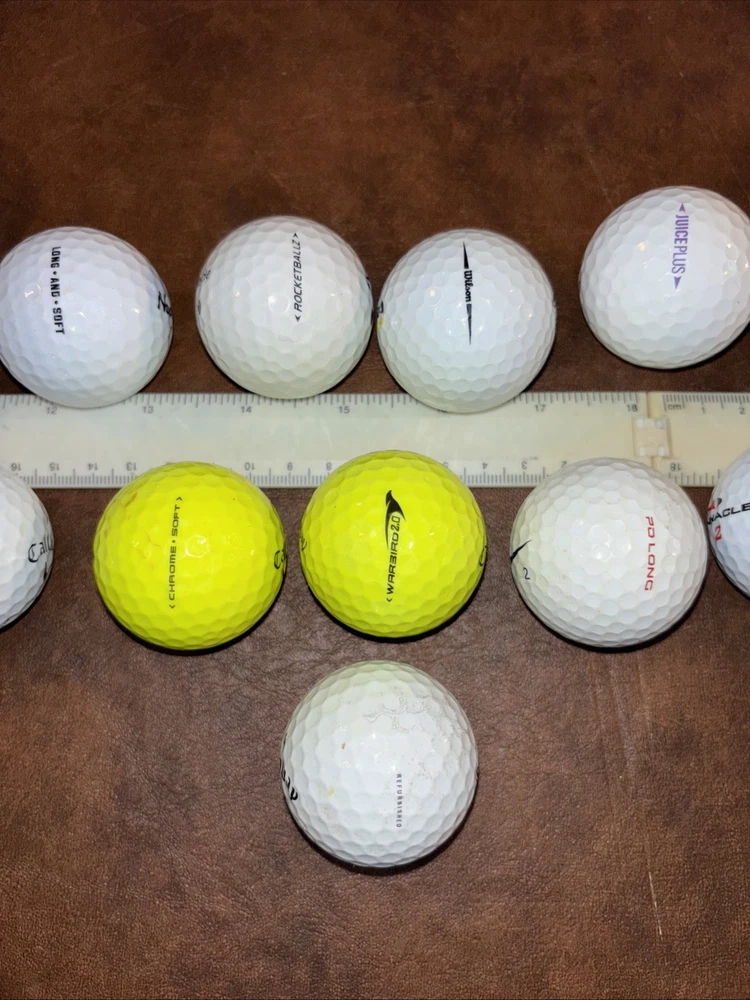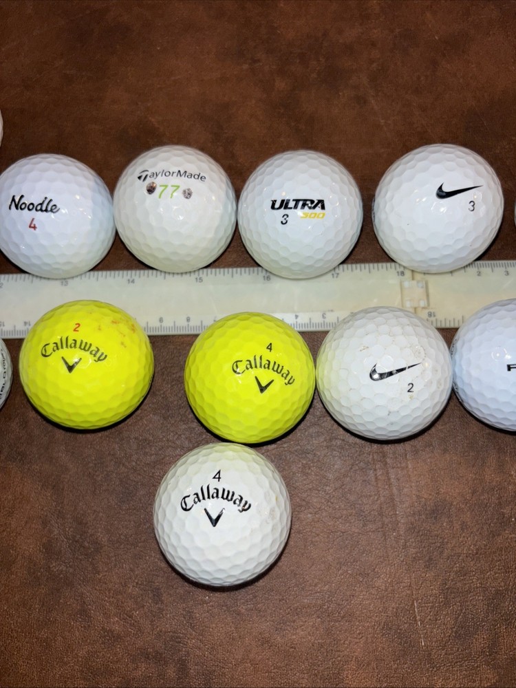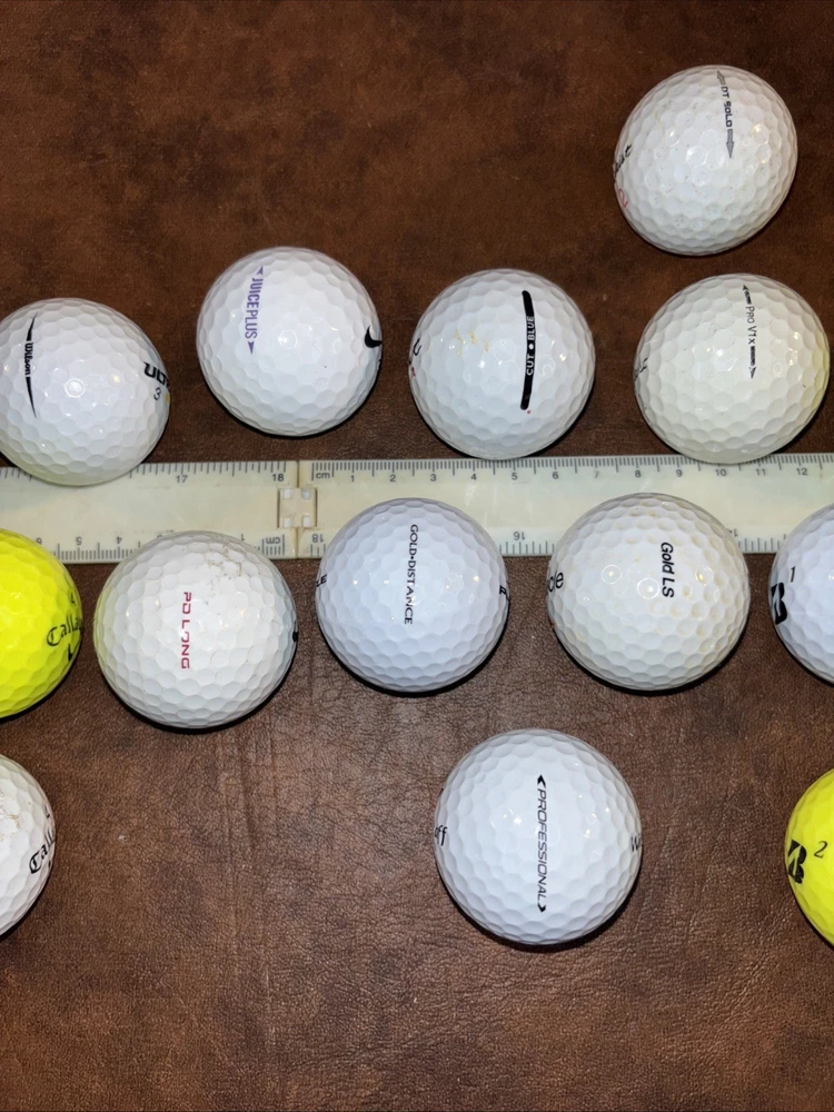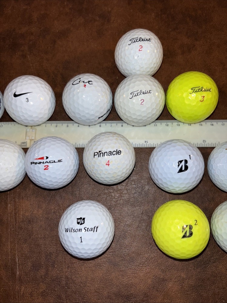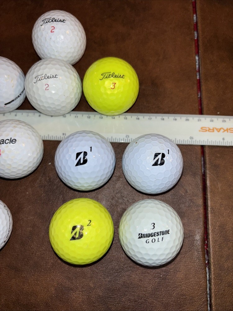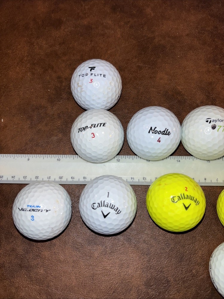 Mixed lot of 23 pre owned fairly new golf balls with brands including Callaway Tour velocity Pinnacle Noodle TaylorMade Nike Cut Titleist Bridgestone Wilson staff Sold as is as pictured. This lot includes a mix of 23 used golf balls, from various top brands such as Callaway and Top Flite. The models available include the Callaway Noodle, a popular choice for golfers. Whether you're looking to add to your collection or simply want to try out different types of balls, this lot has something for you. Perfect for golf enthusiasts of any skill level, these balls are sure to improve your game.