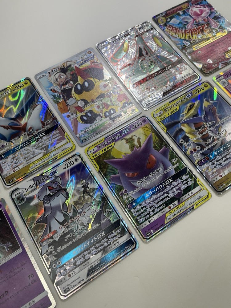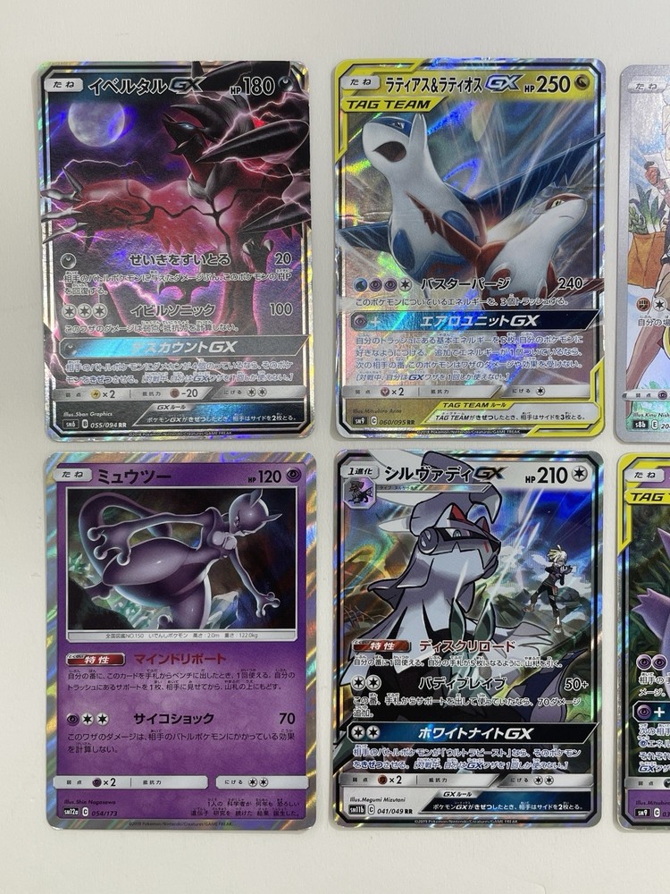 **Item Details:**This 10-card set includes popular GX, EX, and RR Pokémon cards. The cards show some light wear, but overall are in good condition. Perfect for both play and collection. The set includes several highly sought-after cards, making it an excellent value for Pokémon fans. **Included Cards:**- Silvally GX RR- SM12a Mewtwo- SM9b Celesteel GX- SM9 Latias & Latios GX- M Diancie EX (Promo)- S4a Brimoon- S8b Tyraits CHR- SM10a Garchomp & Giratina GX RR- SM6 Yveltal GX RR- SM9 Gengar & Mimikyu RR **Card Condition:**- The cards show some light wear and minor scratches, but overall, they are in great condition. Ideal for both play and collection.- **Please note that the M Diancie EX (Promo) has a crease on the bottom. Kindly review the photos carefully before purchasing.** **Shipping Information:**We offer fast and secure shipping to the USA. The cards will be carefully packaged to ensure safe delivery. **Please Note:**- These cards are in playable condition. We have not had them graded, so please review the condition carefully before purchasing.- The colors of the cards may vary slightly from the images due to lighting and display settings.