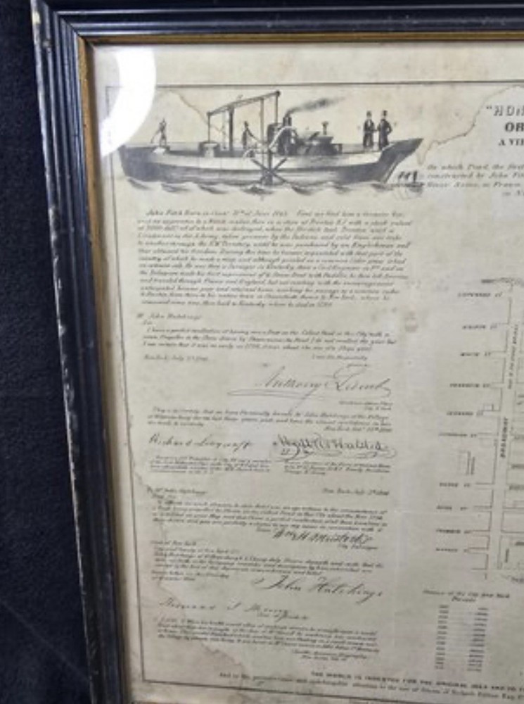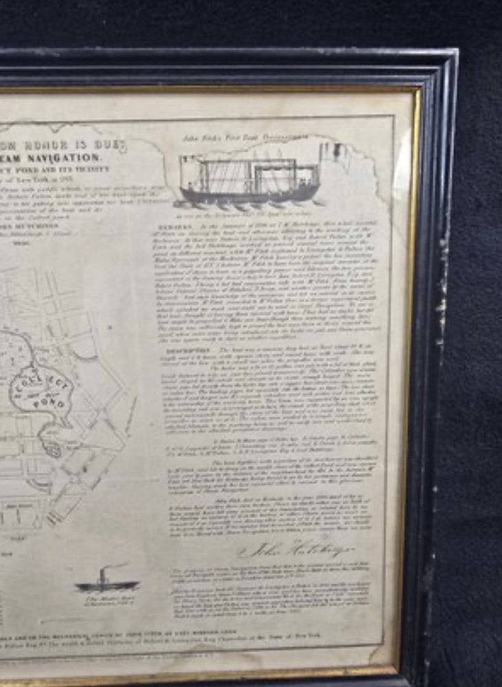 This rare 1846 broadside titled "Origin of Steam Navigation" by John Hutchins is a must-have for any collector of historical ephemera. The piece is framed and ready to display, making it a unique addition to any home or office. The broadside was produced in the United States during the 1800s and is a testament to the rich history of steam navigation during this time period. It has not been modified in any way and is an original piece. Don't miss out on the opportunity to own this fascinating piece of history.