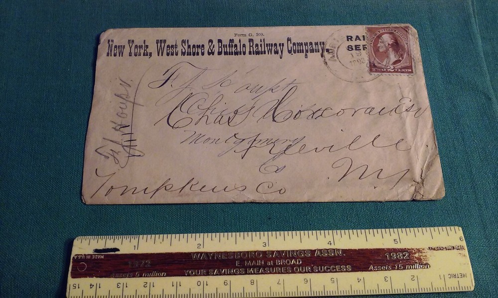 Rare 1893 New York WEST SHORE & Buffalo Railway ENVELOPE (Empty) RxR Canceled Service 2c. Looks like it was double addressed with overlap writing? Kind of confusing.