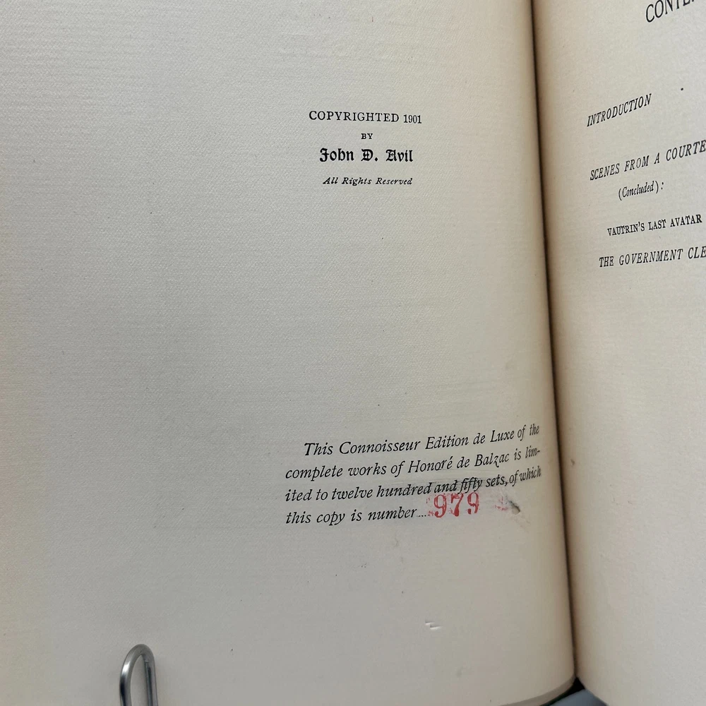 This limited edition, No. 979 of only 1,250 copies. Explore the hidden world of Parisian courtesans in Balzac’s A Courtesan’s Life , a captivating tale of ambition, decadence, and power . This 1901 Connoisseur Edition de Luxe , published by Avil Publishing Company , is limited to just 1,250 copies . With its original green cloth binding and uncut deckled pages , this rare volume is a gem for collectors of French literature and historical fiction . A fine addition to any library or rare book collection!
