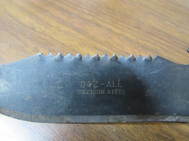 Rare 1950s E J AJAX & SONS DOZ-ALL Swedish Steel Fishing Survival Knife. Great condition, some minor surface rust from storage. Blade is 4.25" and total length is 8.3" This knife is manufactured from genuine Swedish steel. The Austempering process (patented by US Steel Corp) gives the knife an extremely hard cutting edge without destroying the natural toughness and flexibility of the Swedish steel. Please view photos to ensure you know what you're purchasing. Thanks for shopping! Bob's Gun & Tackle Shop LOCATION BC