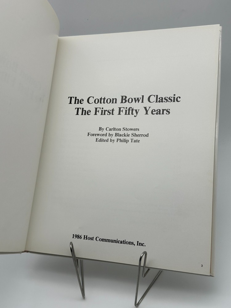 Author: Carlton Stowers Vintage: Yes Genre: Biographies & True Stories, History, Sports Personalize: No Original Language: English Language: English Country of Origin: United States Narrative Type: Nonfiction Ex Libris: No Edition: First Edition Type: Sports History Signed: No Intended Audience: Young Adults, Adults Features: Illustrated Era: 1980s Book Title: Cotton Bowl Classic - The First Fifty Years Personalized: No Format: Hardcover Publisher: Host Communications, Inc Topic: Football Inscribed: No Book Series: Historical Publication Year: 1986
