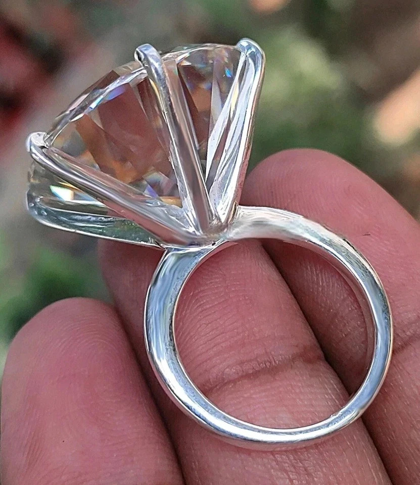 Welcome to Sunlight jewels Buy With Confidence from A Trusted Seller Every Diamond we sell is double tested and 100% guaranteed to be a Real Earth Mined Diamond! RARE 10.20 Ct Treated Off White Diamond Solitaire Ring In 925 Silver. Certified *********************************************************************************************************** Diamond Color - White Shape of Diamond - Round Cut Approx. Weight of Diamond - 77.00 Carat Approx. Size of Diamond - 28 mm Origin of Diamond - Brazil Species - Earth Mined Cut - Excellent Quality - AAA Metal - 925 Sterling Silver Finish - White Gold Ring Size - US 7 is Default, Size Can be resized please massage us This diamond Ring is handcrafted with utmost care. Would make an ideal gift for someone special. The diamond has excellent cut and luster. Comes in attractive packaging. CERTIFICATE OF AUTHENTICITY PROVIDED Shipping : Shipping is by UPS/SPEEDPOST/FEDEX or similar shipping agencies to reach you in 9-12 business days after processing the order. Tracking is provided. Please note: Jewelry items can take up to 10-12 business days to process to take care of ring sizing if any, polishing, finishing, packing and handling, certification, documentation etc. Shipping Charges include eBay fees on Shipping, packaging, certification costs, manpower costs, overheads, taxes etc. in addition to actual courier/postal expenses which have increased substantially as a result of pandemic & global economic conditions. We do not artificially increase the price of the products to include shipping charges but only charge what shipping actually costs us. Combined Shipping: Combined shipping discount is available up to 5 (Five)items in an order to be purchased within 5 days. You can continue to buy- Any additional items above 5 in quantity will be considered a new order. This is to avoid pilferage en-route as well as to ensure that you are happy with the merchandise. Once you have received their items you may buy additional items again. This limit may be revised for repeat and regular customers. Payment: Buyers are requested to pay within 3 (Three) days of purchases. eBay will automatically open unpaid item cases in case payment is not received within this period. The item will also be available for purchase to other buyers till such time that the payment is received. Customs and Taxes: Any customs duties, charges and local taxes are subject to local laws and vary from country to country and hence the payment of any eventual custom duties, charges, levies and taxes etc will be at the buyer's expense. We do not have any control on the same. Returns & Refunds: You can return the item within 14 days of receiving the parcel. - Please return in original packing. Buyers are required to check and ensure that the item/s are in good condition and as per item listing on eBay as no claims for returns and refunds will be entertained thereafter. The returned item should be unused and in original and undamaged condition. Buyer will be required to ensure that the item is sent by trackable shipper. Shipping charges are non-refundable. Refunds are made by PayPal and may take up to 5-7days after receiving back the product/s. Disputes: We aim to settle all disputes amicably. Please do not open any dispute on eBay for dis-satisfaction or for non-receipt or to return an item. We are available through ebay messages system and most messages are replied in a few hours. Personalized satisfaction is of utmost importance to us. Feedback : We always provide excellent feedback to our buyers and expect the same in return with 5-star ratings. In case of any dissatisfaction or any other reason please do contact us before leaving any neutral or negative feedback - we will strive our best to resolve all issues to your satisfaction. Metal : Silver is 925 Sterling Silver with Nickel Free Rhodium Plating. Please refrain from buying if you have allergic reaction to metals. We will not be responsible for any health problems in this regard. Legal Disclaimer : Refund or any claim liability for the buyer is only limited to the value of the item purchased. No additional claims will be entertained for any other reason whatsoever. Please note that since various labs may have different testing methods and the interpretation of all our Diamonds and Stones may differ from one lab to another as well as from one Gemologist, appraiser and Jeweler to another, we will be unable to accept another Lab Certificate or the judgement of any other third party including any Gemologist, appraiser, Lab, Jeweler etc. By consenting to buy our items it is understood that you have read, understood and agree to the terms and conditions as well as the FAQ for the Diamonds and Jewelry being sold buys. FAQ What are Color Diamonds? These are genuine Colored Diamonds found naturally mines mainly from Brazil. They are more porous than White Diamonds and are found in the upper layers of the ground relative to the White Diamonds that are mined deep. Some scientists are of the opinion that their origin maybe a Meteor that impacted earth Billions of years ago. What is their nature? Colored Diamonds are not found in the state as they are sold. They are made from earth mined rough rock found in mines of Brazil. The Rock color varies from Light Blue, Dark Blue, Champagne, Pink, Green etc. What is the treatment process? To bring out its true color it needs to be treated. The process is a natural one employing gentle heating a high-pressure environment (HPHT) which gradually brings out the true color of the Diamond. Are any artificial colors or chemicals added? There are no artificial colors or chemicals included in the process. They are not irradiated. Does it alter the composition? The process may or may not alter the composition. It remains a true Diamond nevertheless. Once our diamonds are heat-treated, it may move the molecules. This causes them to not always test properly with a hand tester. If a hand tester is used, sometimes they test