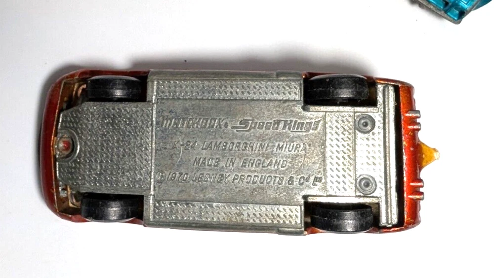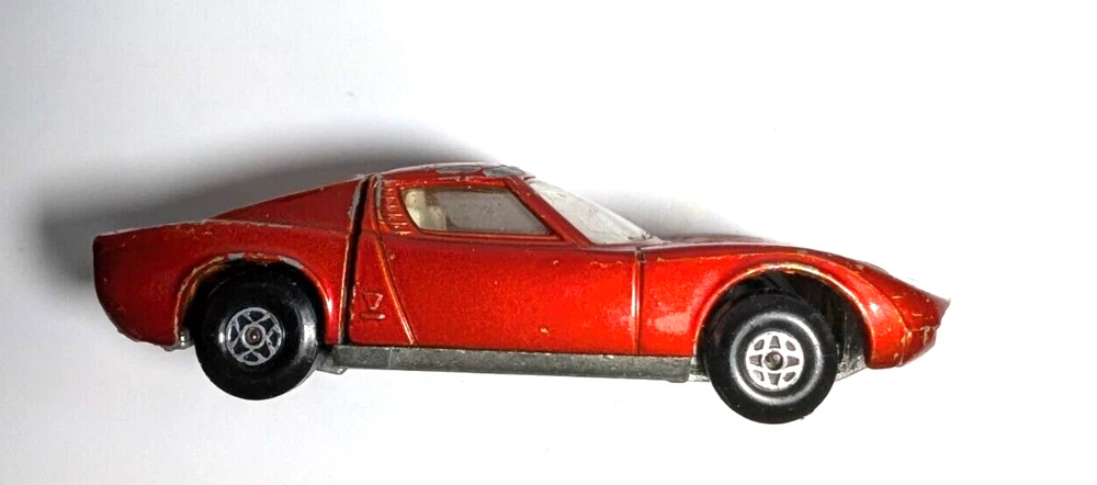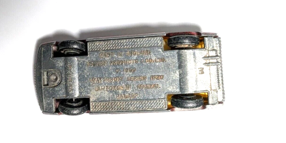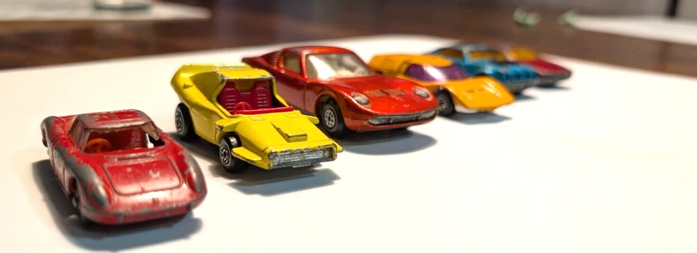 Rare Antique Vintage Matchbox/Lesney Lot Made In England is a collection of diecast vehicles. This unique set includes a variety of cars, all made of high-quality diecast material. Perfect for collectors or enthusiasts of vintage toys, these Matchbox vehicles are sure to bring a touch of nostalgia to any collection. Matchbox Lesney Whoosh - N - Push(1972) Matchbox Lesney Mazda RX500 (1971) Matchbox Lesney Lamborghini Marzal (1969) Matchbox Lesney Pointiac Firebird (1976) LARGER CAR - Matchbox Lesney K-24 Lamborghini Miura Bonus Car (non matchbox) Husky Ferrari Berlinetta 250 GT All cars sold "as is" and as pictured. These are used antique cars that are 50+ years old. See Other Lots in my Store - will offer discounts if purchasing more than one item.