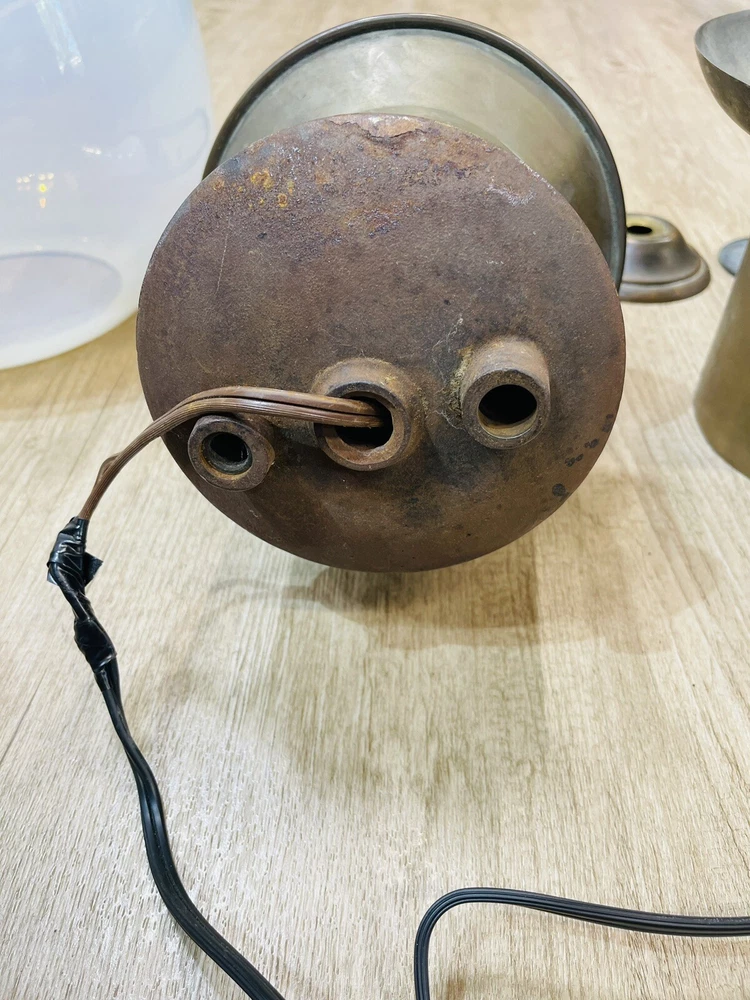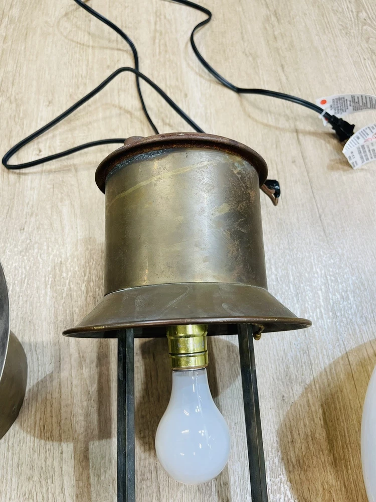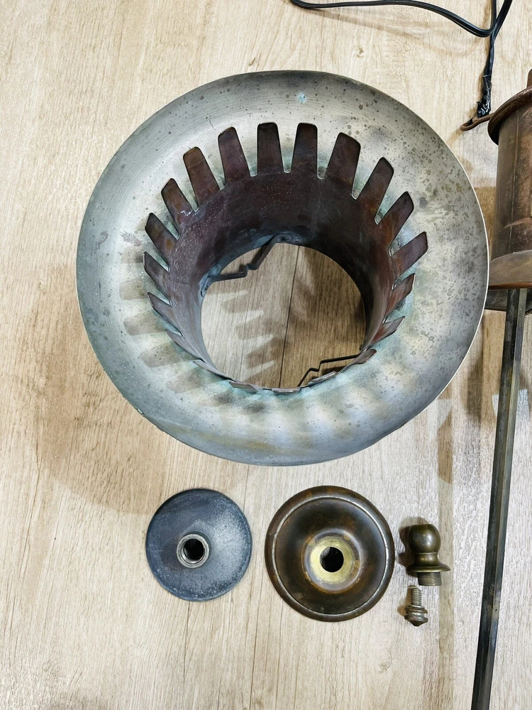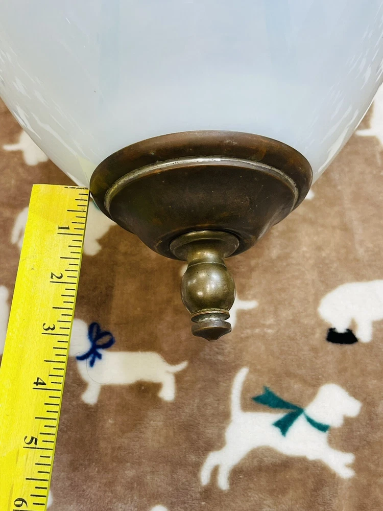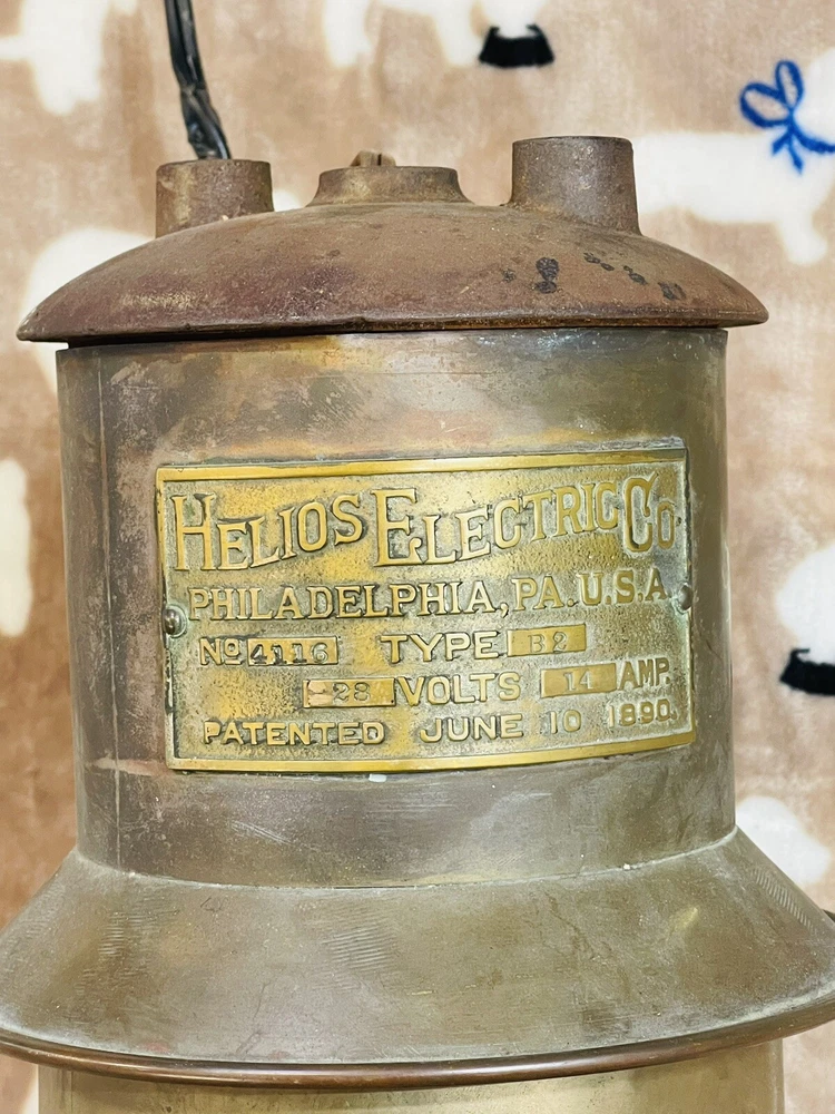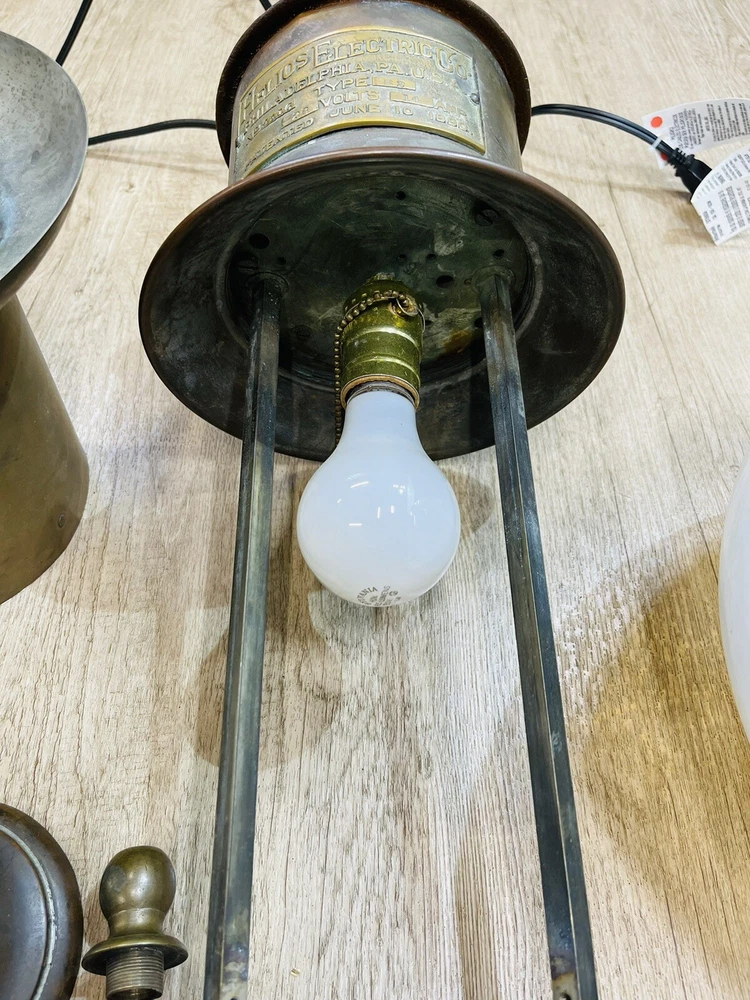 The rare Helios electric company now philco, arc lamp measures 30 inches with a smoke glass globe that measures 15 inches high with a diameter at the largest point of 13 inches around. There are no chips or cracks, just some original casting imperfections in the glass. The our plant has been converted into electric, but will need to be professionally redone. It is in antique unrestored condition . It will be professionally packed and shipped while being insured with signature confirmation. If you have any questions, feel free to send a message.