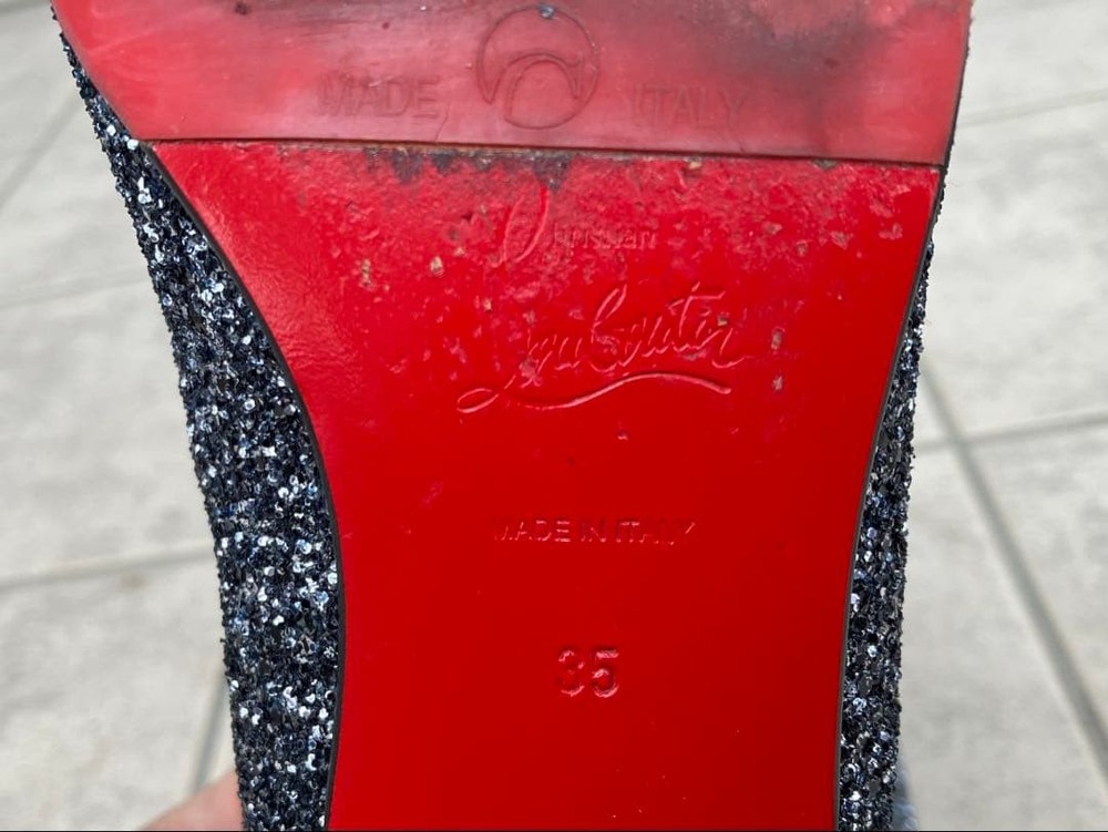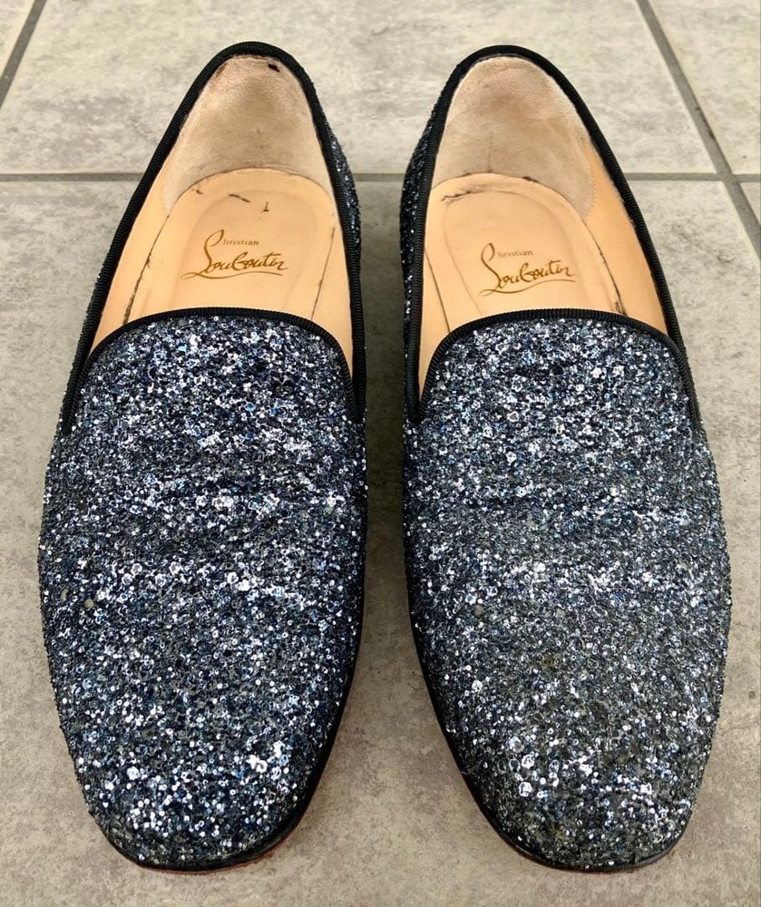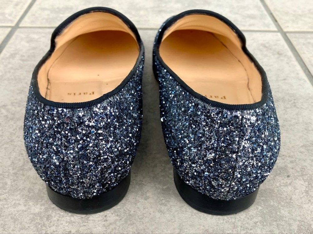 Description * Brand: Christian Louboutin * Material: Glitter * Size: 35 (EU) / 4.5 (US) * Accessories: None These Christian Louboutin slip-on flat shoes feature a beautiful glitter material in silver with a subtle blue hue. The round toe design gives them a glamorous look, making them perfect for the upcoming season. Thank you very much for visiting my auction. Please judge with a photograph. Please have a question I want to do a good deal Payment I accept PAYPAL Payoneer Please make the payment within 5 days after the end of auction. Shipping Worldwide Shipping: eBay SpeedPAK Expedited Terms of Sale If you would like to know more about this item, please contact me before bidding. Items will be sent out within 7 business days after the payment received. When there is a different problem from the indicated contents, please tell me about it within two week. I accept returns only if items did not match the description. Buyer pays return shipping. About Us Return is accepted if only the item is different from item's description. Thank you for looking!!! International Buyers - Please Note: ・Import duties, taxes and charges are not included in the item price or shipping charges. These charges are the buyer’s responsibility. ・Please check with your country’s customs office to determine what these additional costs will be prior to bidding/buying. ・These charges are normally collected by the delivering freight (shipping) company or when you pick the item up - do not confuse them for additional shipping charges. ・We do not mark merchandise values below value or mark items as “gifts” - US and International government regulations prohibit such behavior.