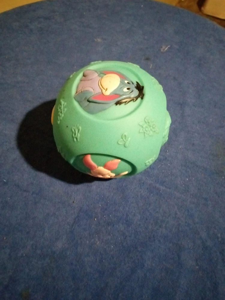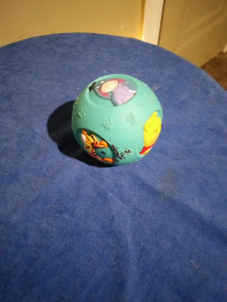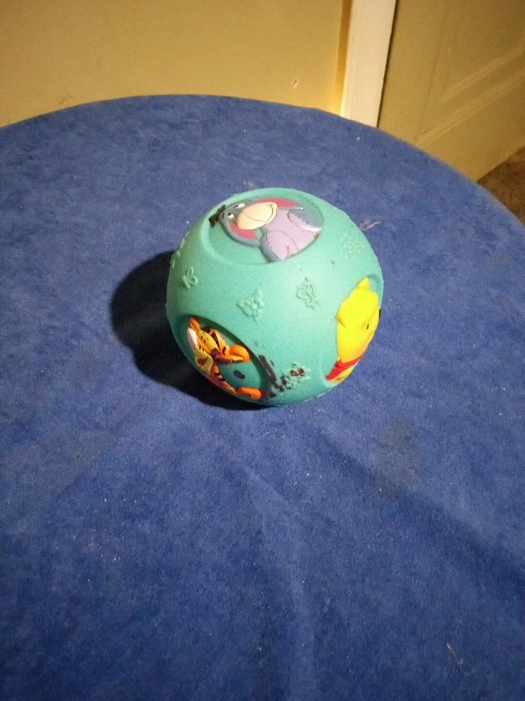 This rare Disney vintage squeaky ball toy features Tigger from Winnie the Pooh, manufactured in Japan in 1982. Standing at 5 inches tall, this Tigger figurine is part of the Disney franchise and was not modified. It was likely showcased at the D23 Expo and is a unique collectible item for fans of Winnie the Pooh. Tb75