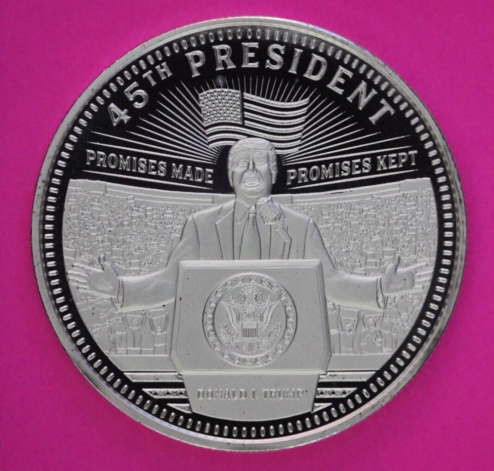 Precious Metal Content per Unit: 1 oz Coin: Donald J Trump Certification: Uncertified Fineness: 0.999 Country/Region of Manufacture: United States Year: 2020 Seller Notes: “You will receive the exact same round in the pictures.” Grade: Ungraded Total Precious Metal Content: 1 Troy Ounce Composition: Silver Brand: Donald J Trump Shape: Coin Strike Type: Proof Brand/Mint: Private