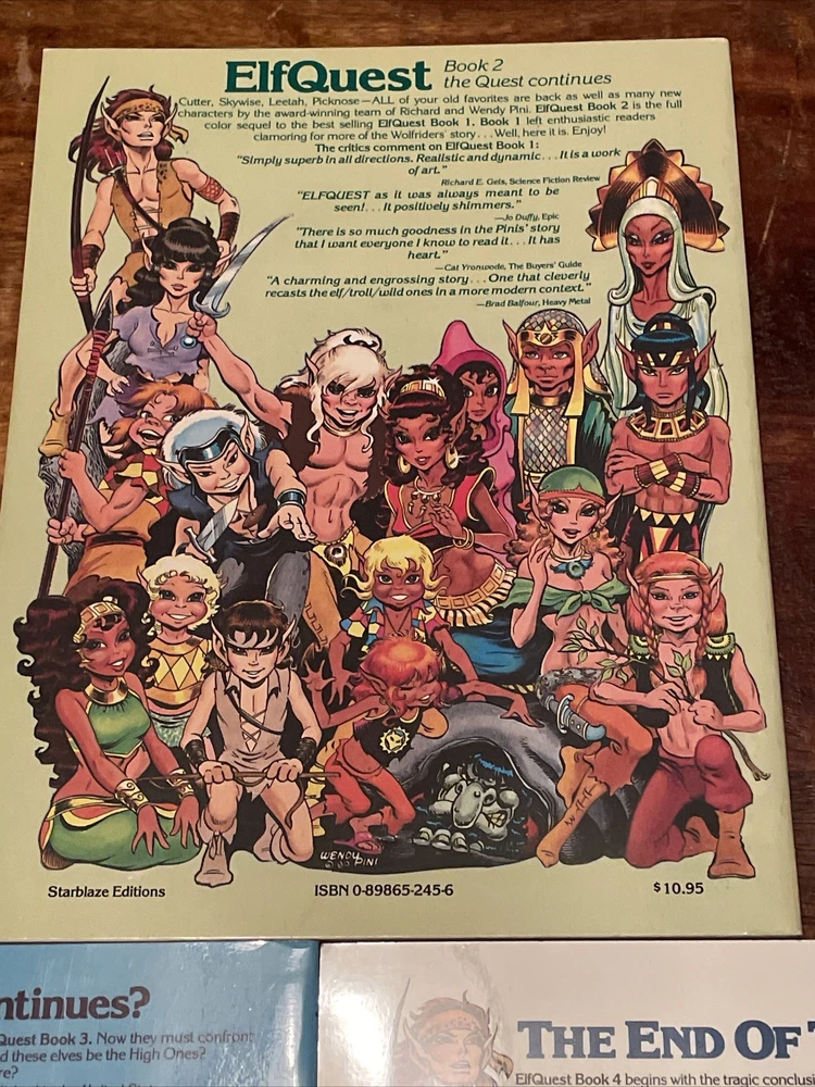 Absolutely love this rare set of Elfquest graphic novels! The Starblaze Editions of books 2, 3, and 4 are a fantastic find for any fan or collector. Wendy and Richard Pini’s storytelling is immersive, blending adventure and fantasy perfectly. The softcovers are in great condition, and the Bronze Age artwork is stunning. A must-have for anyone who cherishes classic comics—so glad to add these to my collection!