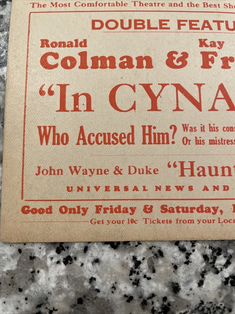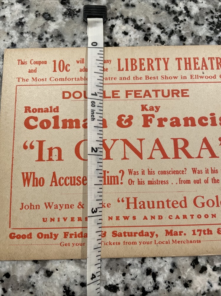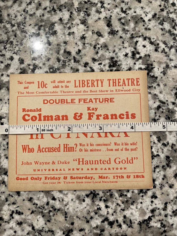 Rare Early John Wayne & Duke Movie Ticket Coupon Ellwood City PA Haunted Gold.