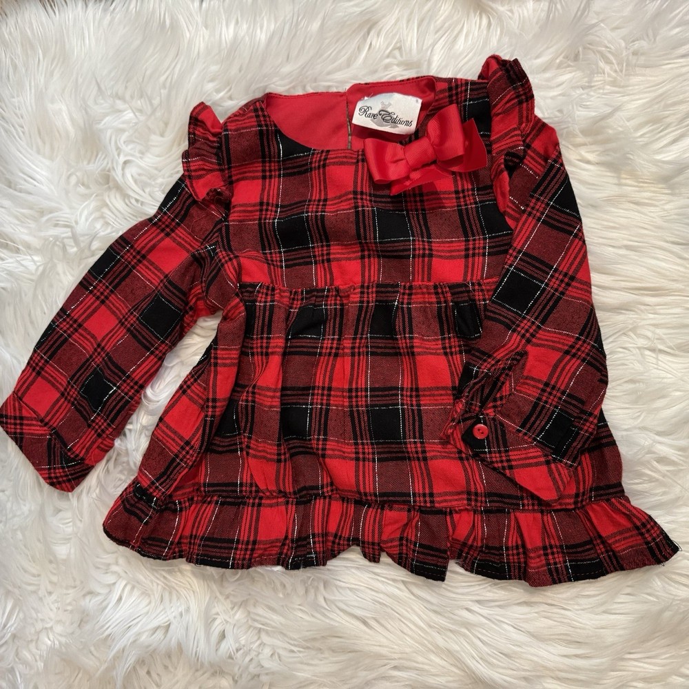 Festive and adorable Rare Editions girls’ 4T Christmas outfit set, perfect for holiday photos, school events, Christmas parties, or family gatherings. This 2-piece set includes a red plaid long-sleeve top with ruffle trim and bow detail, paired with soft black cable-texture leggings for a complete holiday look. Like New, excellent condition Smoke & Pet Free Home