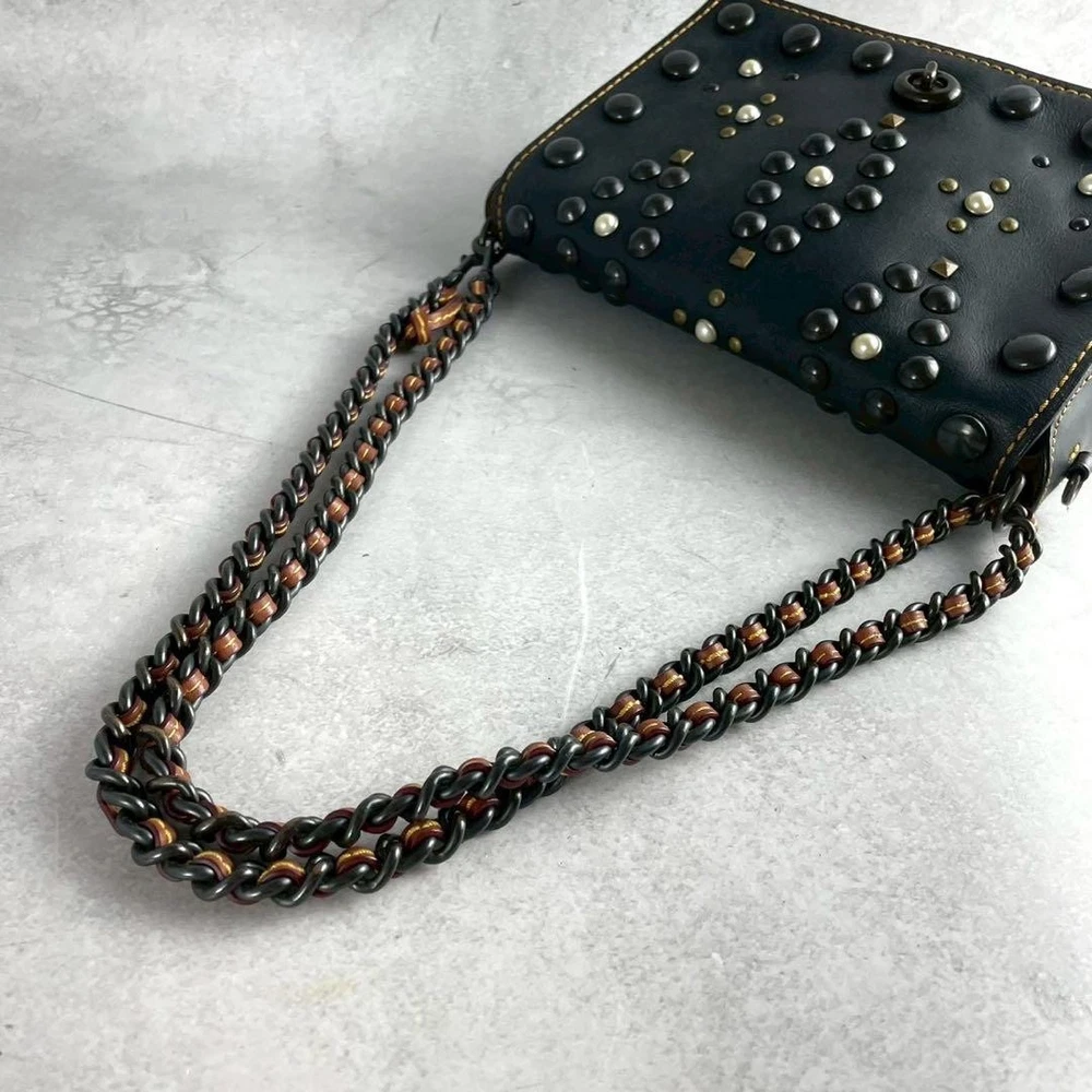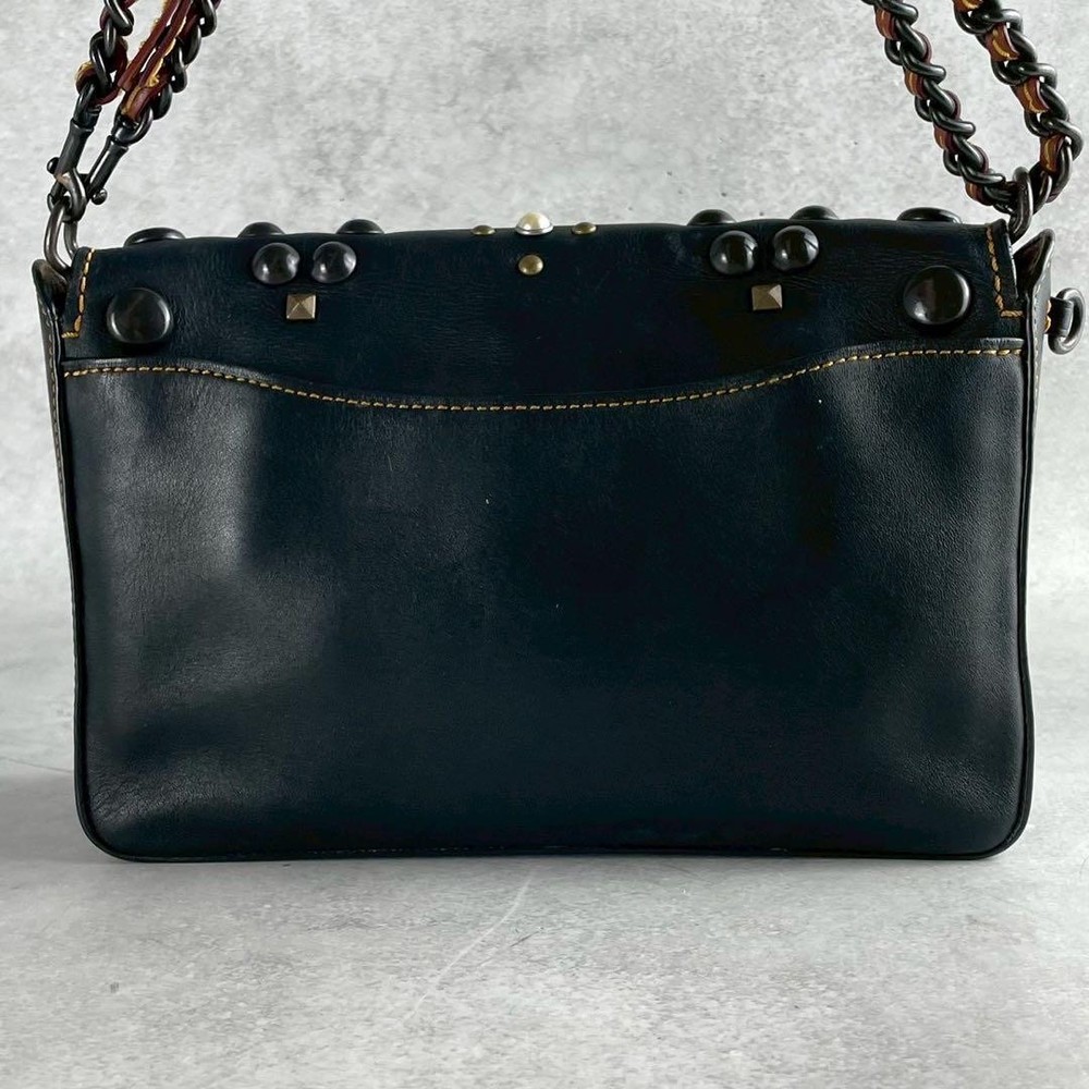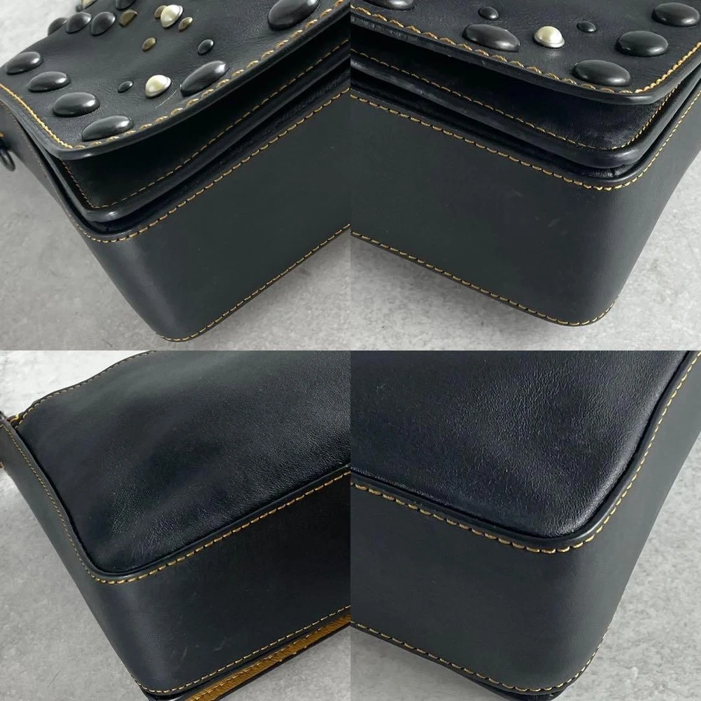 Rare Excellent Condition Coach Shoulder Bag 2way Studs Pearl Leather Black