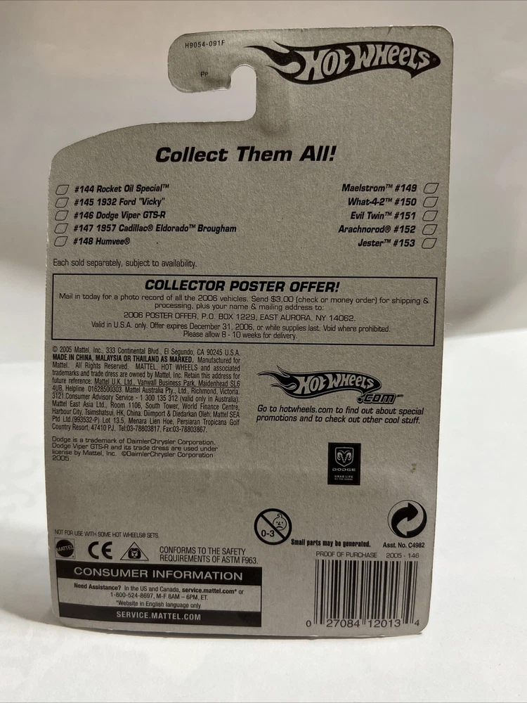ππ PLEASE SEE OTHER ITEMS, I M LISTING THIS FROM A MEGA NERF LOT - I WILL BE LISTING NERF PISTOLS, RIFLES, ACCESSORIES, ETC - NERF RIVALS WHITE/RED, ACCUSTRIKE, TERASCOUT, RAMPAGE, ZOMBIE ETC m, VIDEO GAMES (NINTENDO GB, DS,WII, PSP) - HOT-WHEELS 100S, TECH DECKS, MATCH BOX, MUSCLE MACHINES, FUNKO POPS, TOYS, PLUSH, BOARD GAMES, DVDS, CDS, BLURAYS PUZZLES, LEGOS, ETC FREE SHIPPING βοΈβοΈβοΈβοΈ PROCESSING TIME: 3 DAYS I HAVE ALMOST 100 FUNKO POPS FROM VARIOUS SETS TO INCLUDE: MASTERS OF THE UNIVERSE, STRANGER THINGS, MARVEL, DISNEY, JUMBO SIZE ETC - PLEASE SEE STORE - FAST FREE SHIPPING - I WOULD BE WILLING TO COMBINE SHIPPING FOR MULTIPLE ORDERS - I HAVE MANY ITEMS PER SET - ITEM: - HOTWHEEL - DATE: 2005 NAME : Dodge Viper GTS-R # : 146 SHORT CARD? - no DESCRIPTION: - new, retired RETRO/ VINTAGE - PREOWNED ITEMS MAY SHOW SIGNS OF SHELF WEAR DUE TO THE NATURE OF AGE. THANKS MUCH FOR YOUR SUPPORT MY DEAR CUSTOMER βοΈπ
