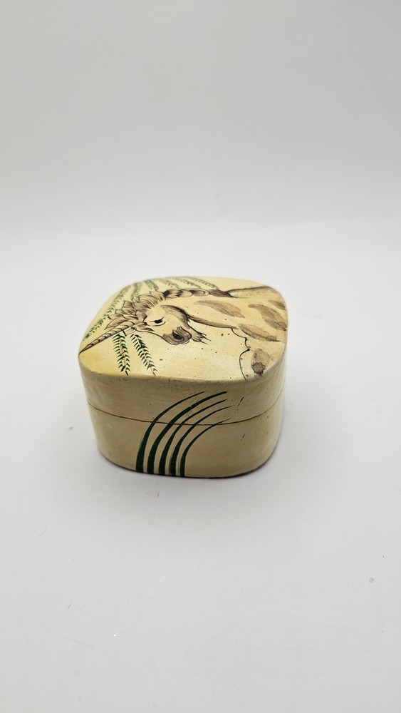 Rare Handcrafted Kashmir Wooden Unicorn Ivory Black Painted Box