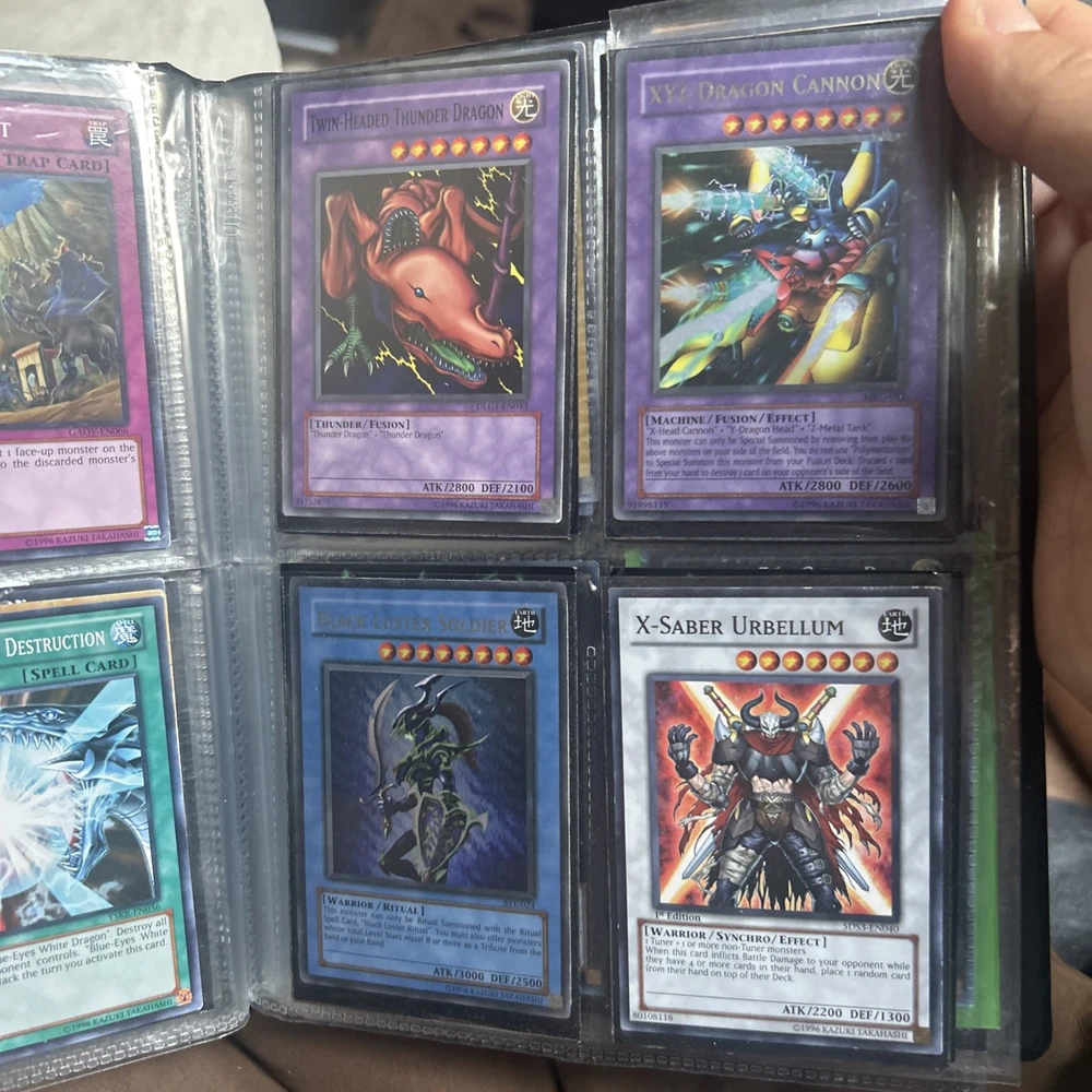 This product is a vintage binder full of Yu-Gi-Oh! trading cards from the Yugi set, manufactured by Konami in 1996. The cards are standard size, made of card stock with a holo finish, and are in English. It is a collection of collectible cards for the Yu-Gi-Oh! TCG, ideal for fans and collectors looking to expand their card collection with classic cards from the early years of the game.