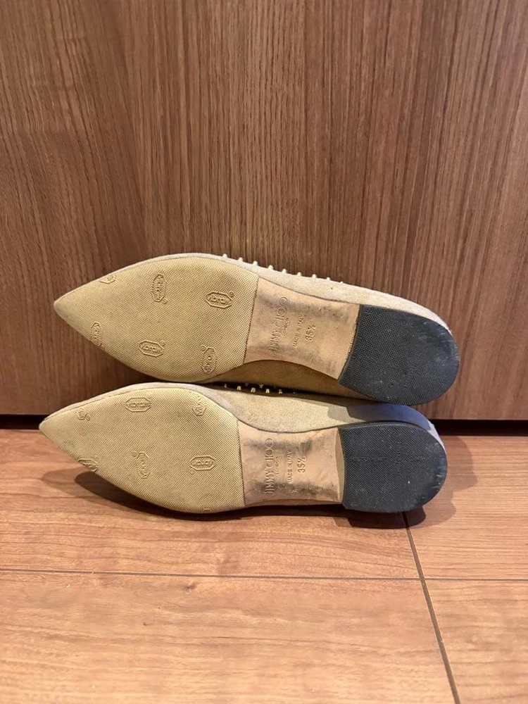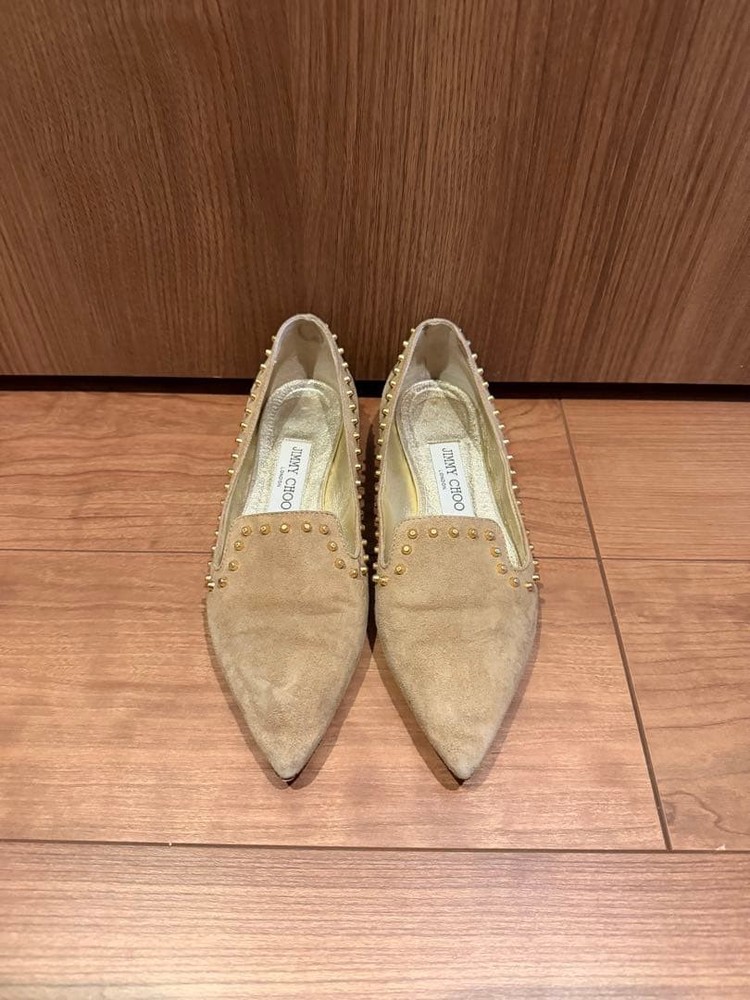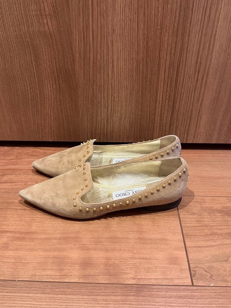 Description Jimmy Choo Studded Suede Flats. Color: Greige (Gold tone) Size: 35 1/2 (Approximately 22.5-23.0 cm / US Women's 6) Sole has been reinforced. These flats have been worn a few times and show minor signs of wear on the toe area, as depicted in the images. The overall shape remains intact, ensuring continued usability. All studs are present and secure. These stylish Jimmy Choo flats are crafted from suede and feature signature stud embellishments. The pointed toe design adds a sophisticated touch. Thank you very much for visiting my auction. Language: Japanese Please judge with a photograph. Please have a question I want to do a good deal Payment I accept PAYPAL Payoneer Please make the payment within 5 days after the end of auction. Shipping Worldwide Shipping: eBay SpeedPAK Expedited Terms of Sale If you would like to know more about this item, please contact me before bidding. Items will be sent out within 4 business days after the payment received. When there is a different problem from the indicated contents, please tell me about it within two week. I accept returns only if items did not match the description. Buyer pays return shipping. About Us Return is accepted if only the item is different from item's description. Thank you for looking!!! International Buyers - Please Note: ・Import duties, taxes and charges are not included in the item price or shipping charges. These charges are the buyer’s responsibility. ・Please check with your country’s customs office to determine what these additional costs will be prior to bidding/buying. ・These charges are normally collected by the delivering freight (shipping) company or when you pick the item up - do not confuse them for additional shipping charges. ・We do not mark merchandise values below value or mark items as “gifts” - US and International government regulations prohibit such behavior.