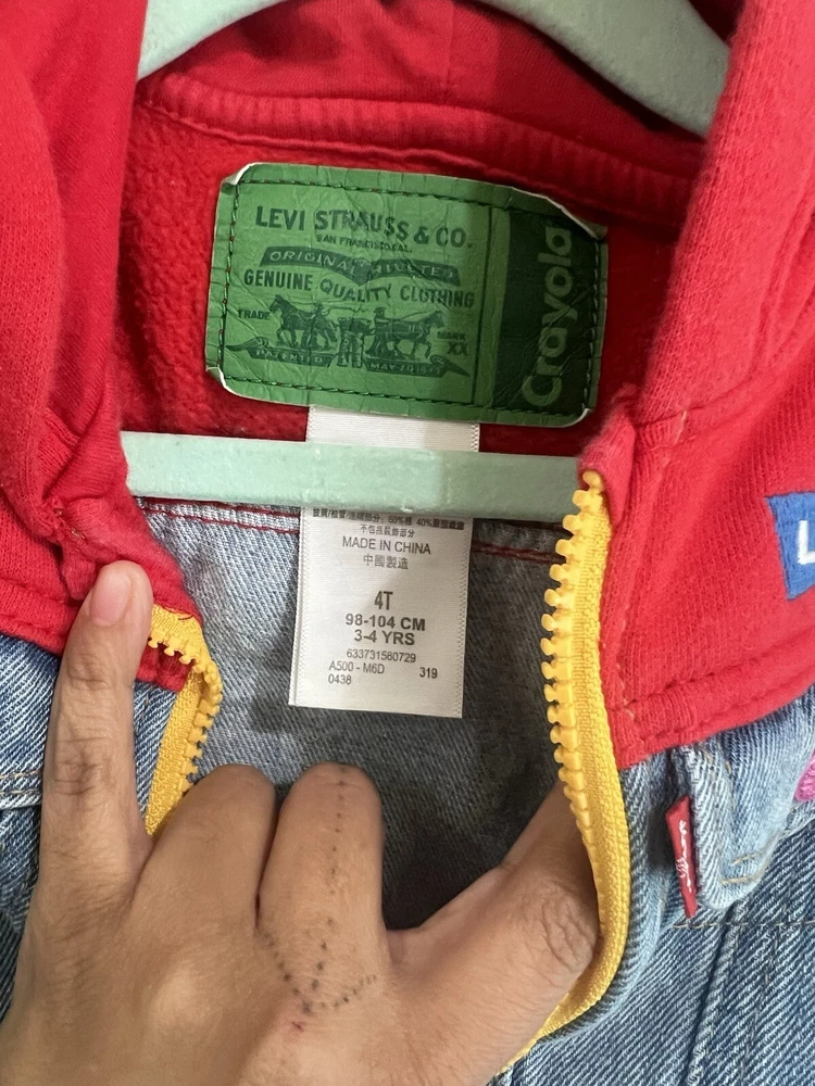 Crafted for durability and style, this rare Levi's denim jacket for kids is a versatile addition to any young fashion enthusiast's wardrobe. This machine-washable garment is a practical choice for everyday wear, maintaining its shape and color through repeated washes.