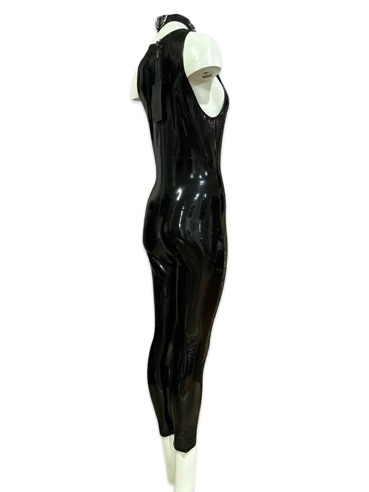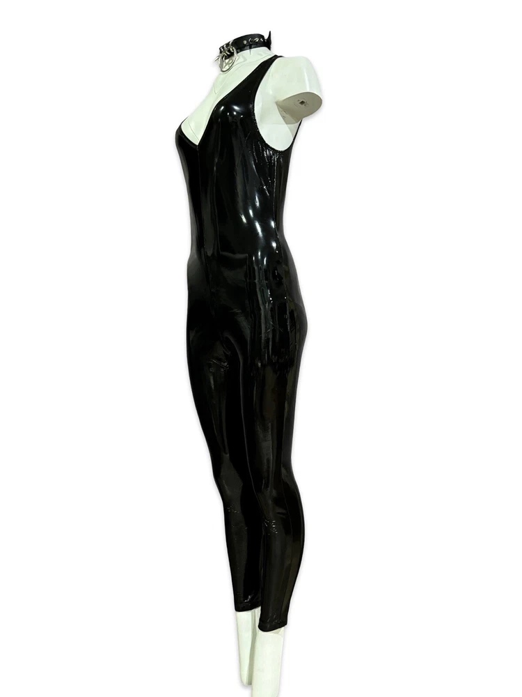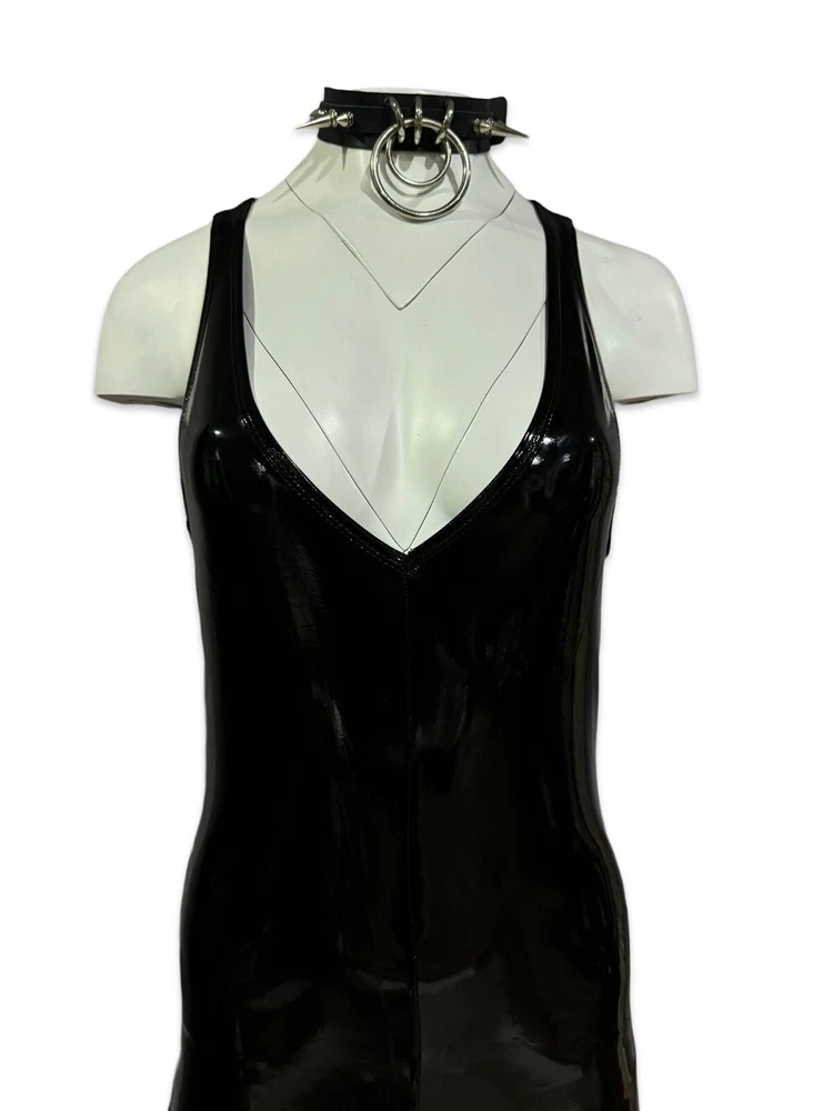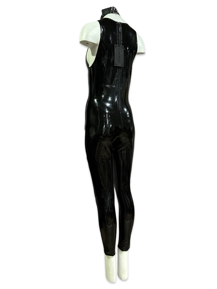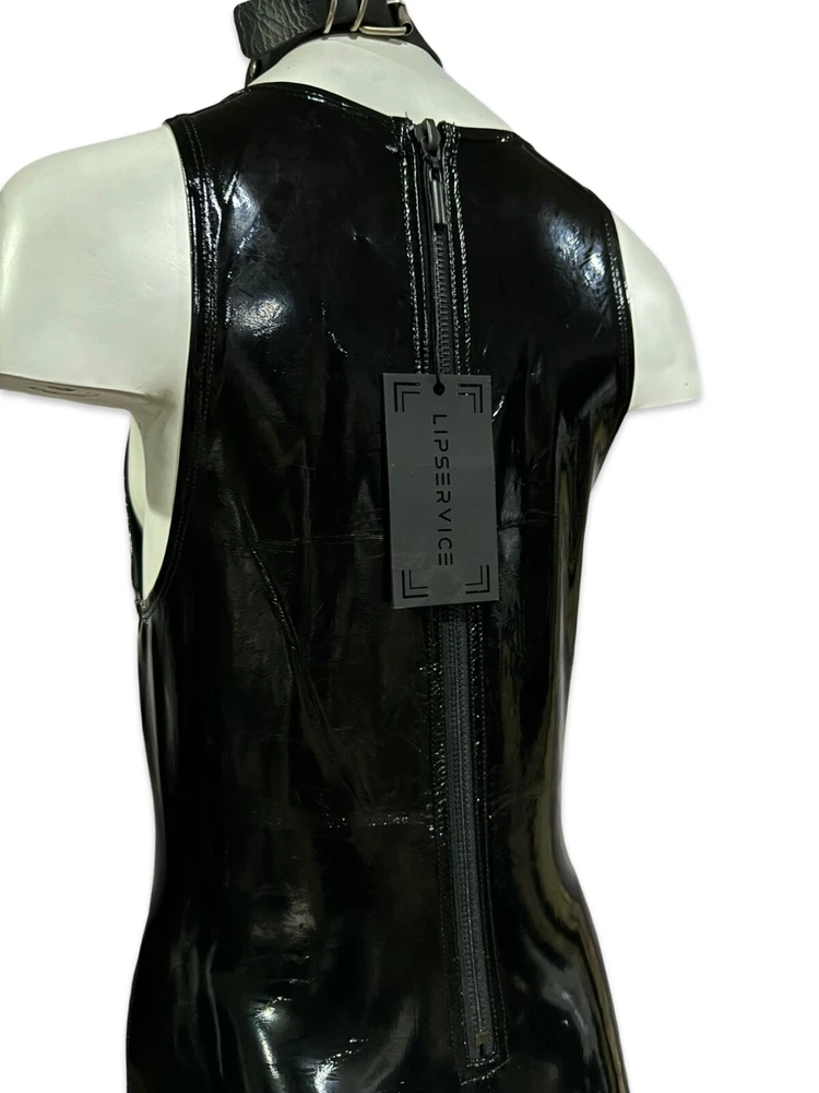 Rare Lip Service Original Cult Vinyl Catsuit Wetlook jumpsuit with back zipper closure. Necklace is not included. Fabric: Self 100% Polyurethane Coated Face 80% Rayon 20% Spandex Back Measurements when laying flat and unstretched. Size S - armpit to armpit 14" - waist 13" - hips 16" Size M - armpit to armpit 15" - waist 14" - hips 17" Inseam 28" This jumpsuit is very stretchy. #halloween #costume #cosplay #catwoman #vampire #witch #goth #batman #fetish #sexy #batman #burningman #madmax #wasteland #disco #uniform