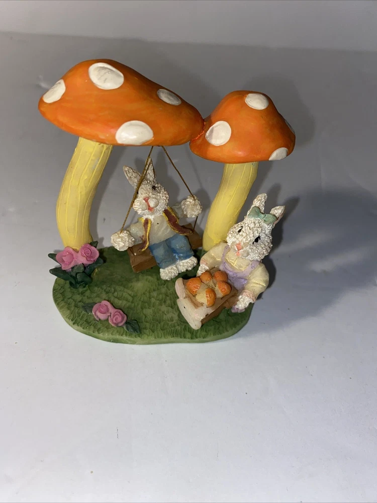 Add a touch of nature to your home decor with this rare Mushroom & Rabbit Crafts animal figurine ornament. Standing at 3 3/4 inches tall, this figurine features a cute and intricately crafted mushroom and rabbit design that will bring a unique touch to any room. The figurine is made with high-quality materials and is perfect for animal lovers or those who appreciate unique home decor. This figurine is ideal for placement on a shelf, table, or mantel, and will add a touch of whimsy to any space. With its intricate details and adorable design, this Mushroom & Rabbit Crafts animal figurine ornament is a must-have for collectors and nature enthusiasts alike.