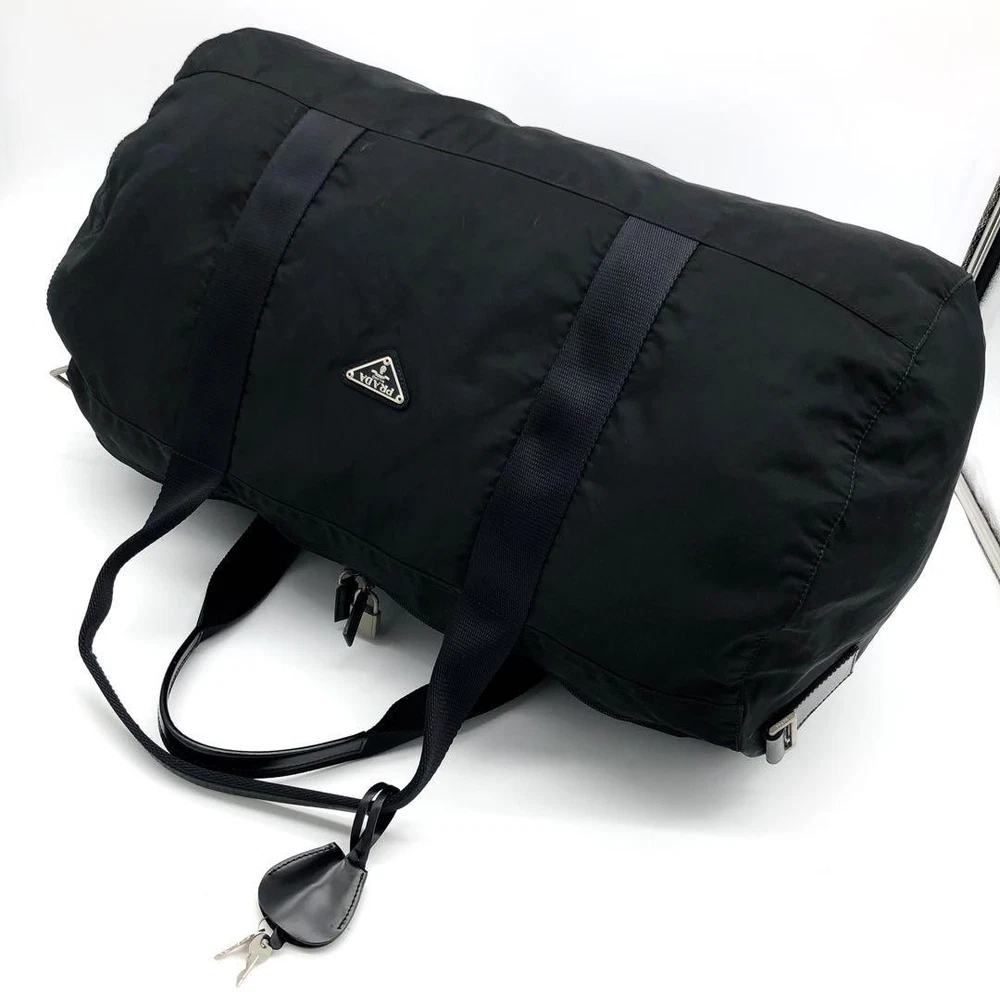 Rare PRADA Tessuto Nylon Boston Bag Black with Padlock & Key Excellent Condition Description Brand: PRADA Material: Tessuto Nylon and Leather Color: Black Dimensions: Height: Approximately 22 cm / 8.66 inches Width: Approximately 49 cm / 19.29 inches Depth: Approximately 21 cm / 8.27 inches Handle drop: Approximately 47 cm / 18.50 inches Condition: Excellent, with minimal signs of use. Accessories: Padlock and key Specification: Zipper closure, interior pocket Features: Triangle logo plate, lightweight, durable Thank you very much for visiting my auction. Language: Japanese Please judge with a photograph. Please have a question I want to do a good deal Payment I accept PAYPAL Payoneer Please make the payment within 5 days after the end of auction. Shipping Worldwide Shipping: Economy shipping, Japan Post, with tracking number EMS+20$ (insurance &tracking number 3-7 days to USA.) Terms of Sale If you would like to know more about this item, please contact me before bidding. Items will be sent out within 4 business days after the payment received. When there is a different problem from the indicated contents, please tell me about it within two week. I accept returns only if items did not match the description. Buyer pays return shipping. About Us Return is accepted if only the item is different from item's description. Thank you for looking!!! International Buyers - Please Note: ・Import duties, taxes and charges are not included in the item price or shipping charges. These charges are the buyer’s responsibility. ・Please check with your country’s customs office to determine what these additional costs will be prior to bidding/buying. ・These charges are normally collected by the delivering freight (shipping) company or when you pick the item up - do not confuse them for additional shipping charges. ・We do not mark merchandise values below value or mark items as “gifts” - US and International government regulations prohibit such behavior.