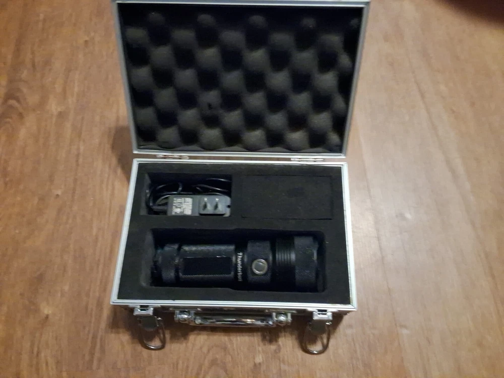 Rare Powertac Thunderbolt Rechargeable Flashlight, 1000 Lumens, USB power bank output. Works great. Sturdy carrying case. Powertac limited lifetime warranty.