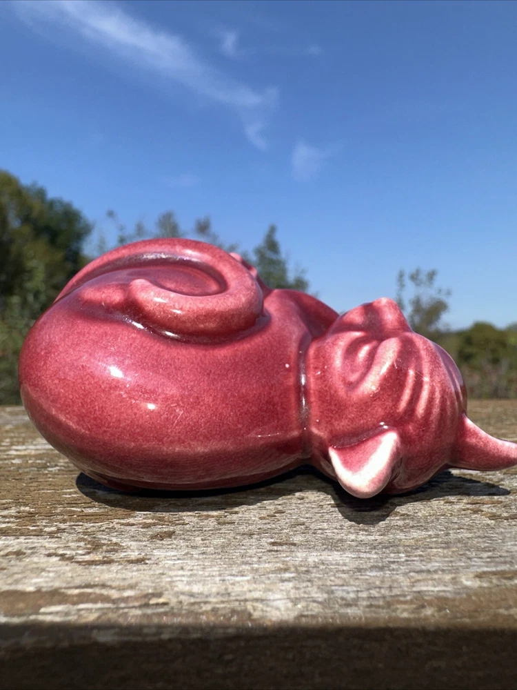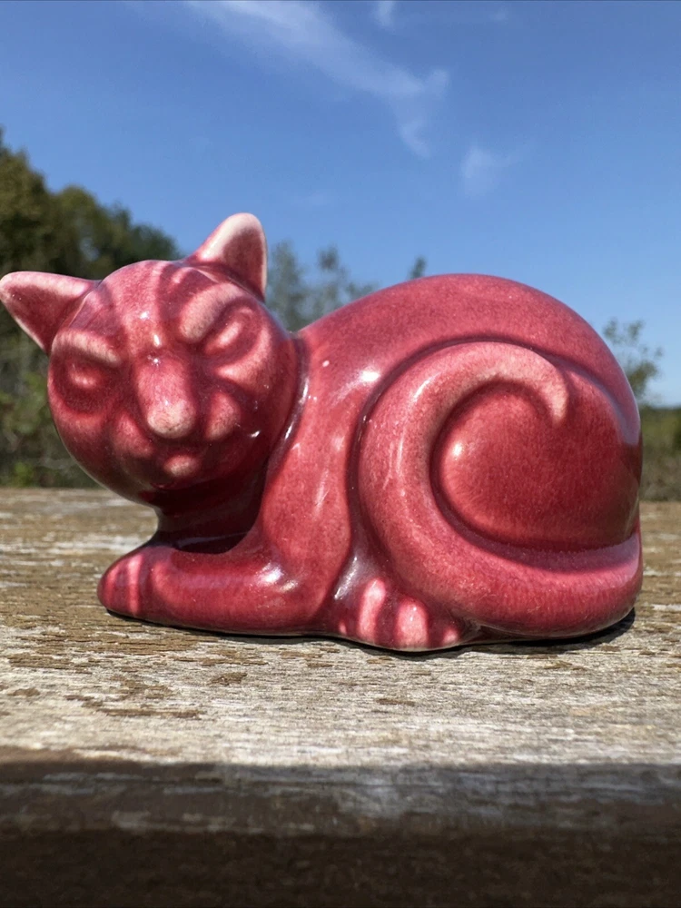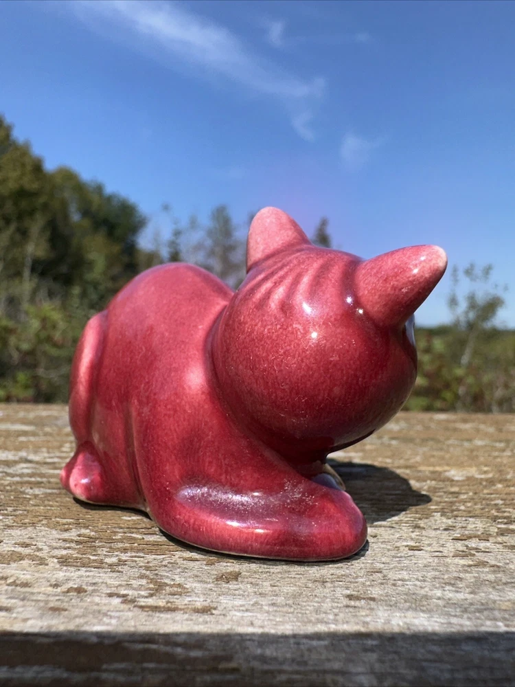 This beautiful figurine is a rare find for any collector. Made by Homer Laughlin, it features a charming cat design with a glossy red finish. The piece is made of high-quality ceramic and has a vintage feel to it. The Harlequin Animal Cat Maroon Rare Red Fiestaware Vintage figurine is a perfect addition to any decorative pottery collection. It is an original piece and was handmade in the United States. This art pottery piece is part of the Fiesta product line and is sure to catch the eye of any cat lover.