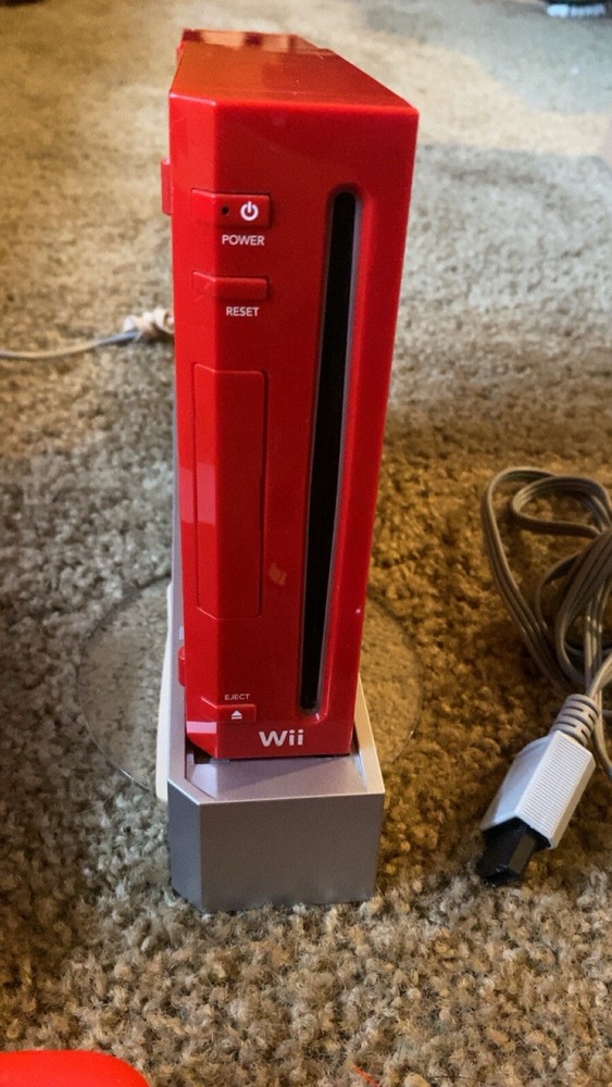 This console has been tested and working however it does not include the sensor bar. Everything in the photo is what is included Serial number has been photographed for console verification Good working condition rare red console This rare, limited edition Nintendo Wii console comes in a striking red color and includes all the necessary accessories. The console has been thoroughly tested and is in perfect working order. It is designed for use with NTSC-U/C (US/Canada) systems and is compatible with the Nintendo Wii platform. The console is a must-have for any serious collector or avid gamer. It comes complete with all the necessary cords and remote controls, which have also been tested and are in perfect working order. The console is a true gem, and you won't find another like it anywhere else.