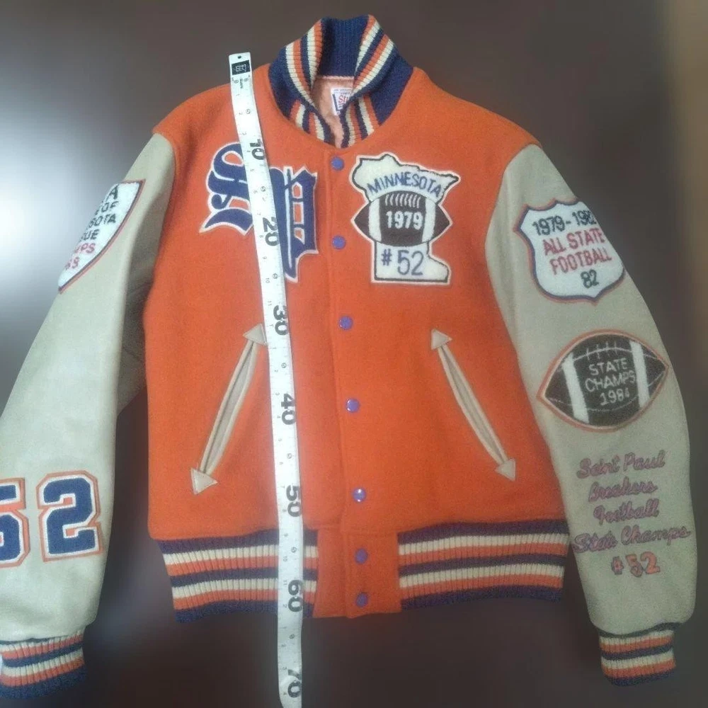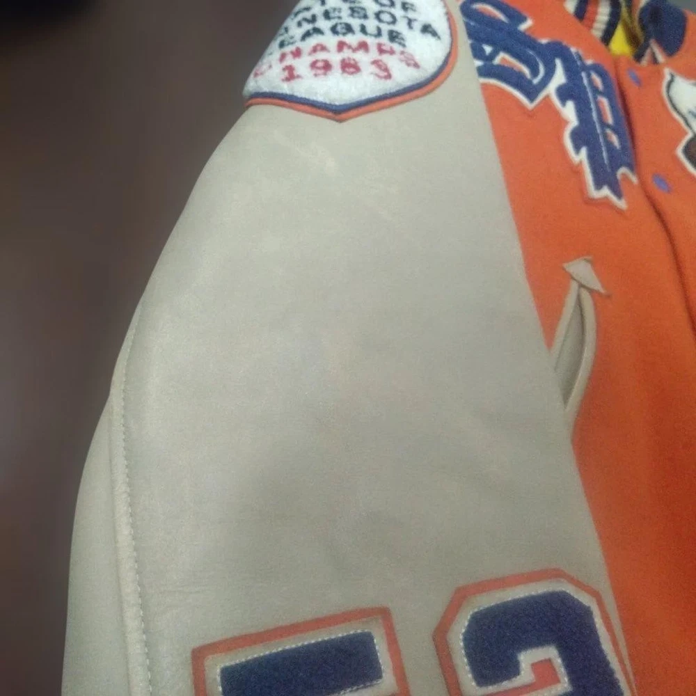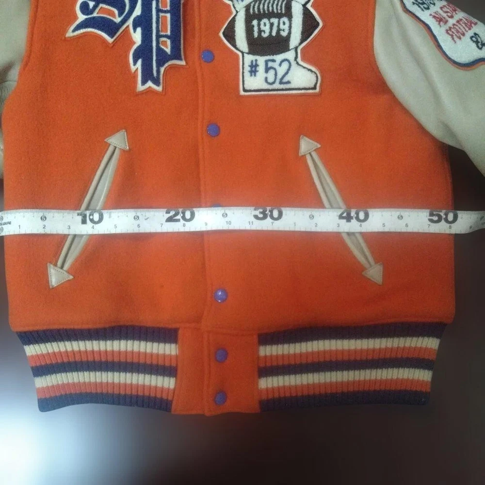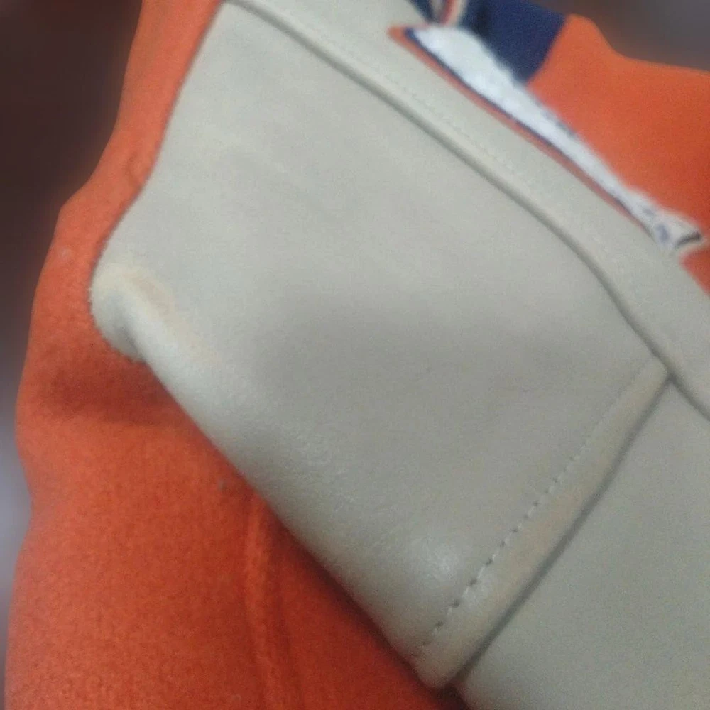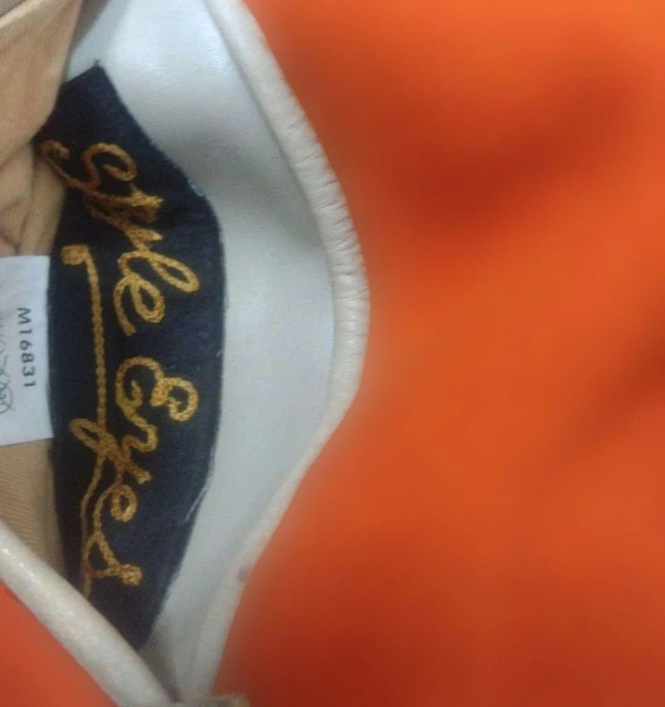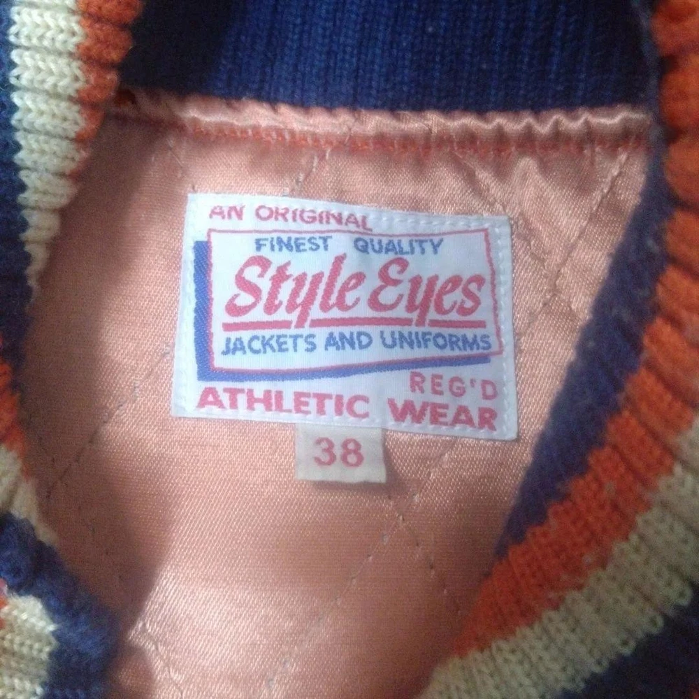 Rare STYLE EYES Style Eyes Toyo Enterprises Stadium Jacket 38 Key Features Vintage STYLE EYES varsity jacket by Toyo Enterprise, model M16831. Main color is orange with beige leather accents. Size 38 (approximate M). Features include minor wear, small hole, stain, and some scuffs on the leather. Overall good condition for its age. Please review images for detailed condition. Ideal for collectors or casual wear. Item Specifics: Brand: STYLE EYES Type: Varsity Jacket Model: M16831 Color: Orange with Beige accents Size: 38 (M) Material: Cotton, Leather Condition: Used, vintage with minor signs of wear Specifications Brand STYLE EYES Country Japan Department Men Size M Size Type Regular Style Jacket Type Jacket Product Description 🌎 Shipping & Import Duties For U.S. Buyers: Shipped via DDP (Delivered Duty Paid) . All import duties and taxes are included in the listed price. No extra payment is required upon delivery. For Non-U.S. Buyers: Shipped via DDU (Delivered Duty Unpaid) . Import duties and taxes may apply and are the buyer’s responsibility. We ensure safe packing and smooth customs clearance for all destinations.
