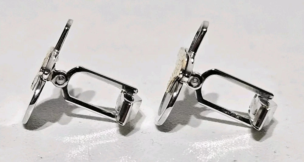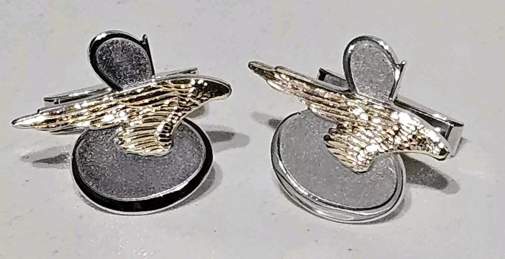 Up for sale is a Rare Pair of Tiffany & Co. Sikorsky Aircraft/Lockheed Martin Executive Sterling Silver and 14K Yellow Gold Cufflinks. Measures approximately 1" Wide X 7/8" High. Total weight is 11.4 Grams. Cufflinks come in original Tiffany & Co. gift box. Cufflinks are in excellent condition. Please feel free to ask questions. Thank you. From a smoke and pet free environment E-345