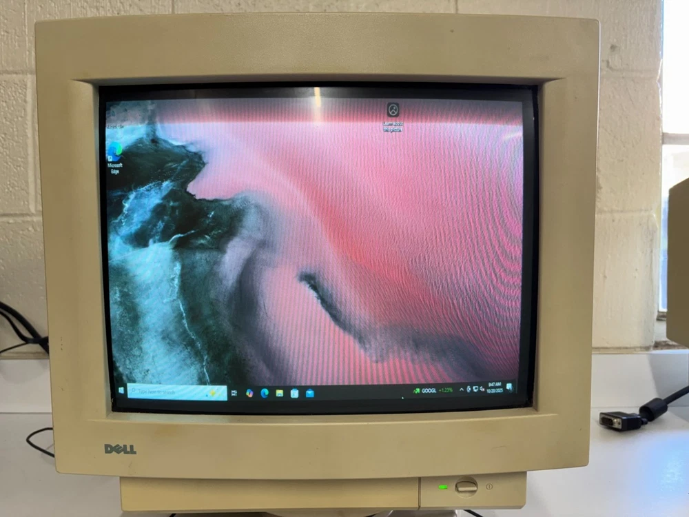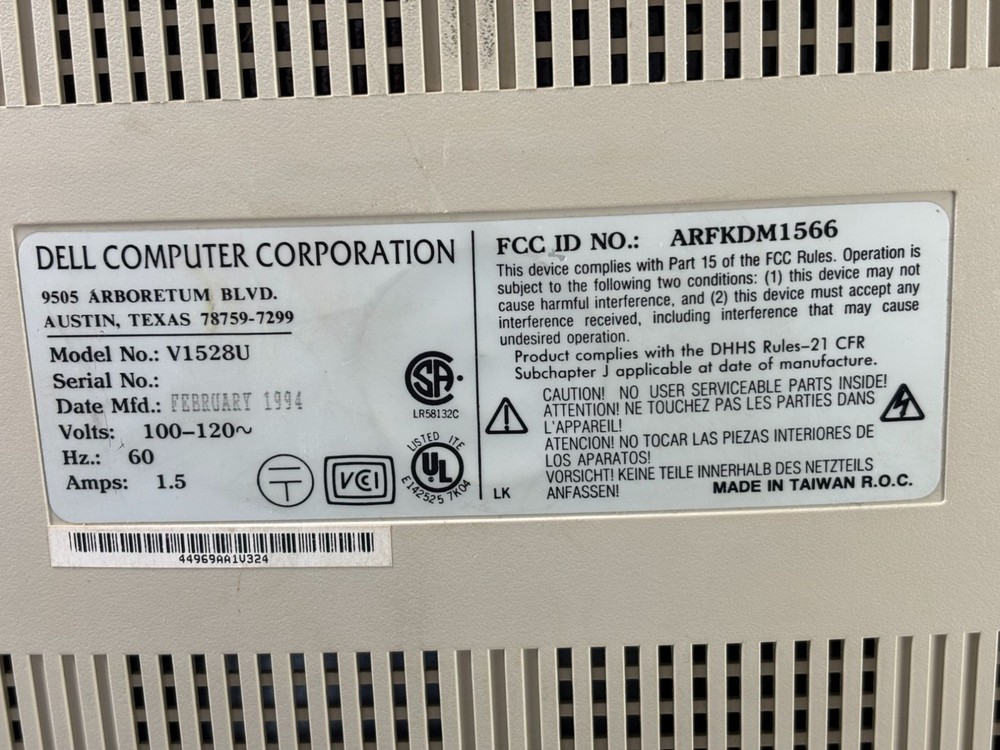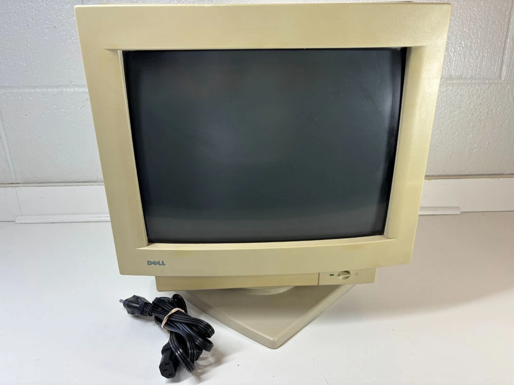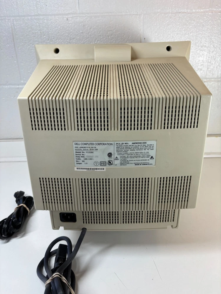 Retro Dell CRT monitor from 1994, fully functional. 15-inch display, beige color, includes VGA cable. Ideal for vintage setups or retro gaming use. • 15-Inch CRT Screen • VGA Connector Included • Manufactured In February 1994 • Made In Taiwan R.O.C • Beige Housing Minor wear consistent with age, no visible cracks or major damage. Screen top to bottom = 15 inches.