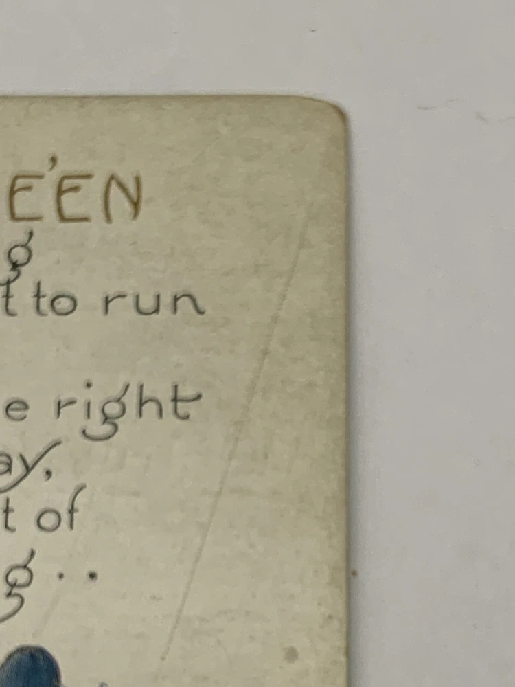 In good antique condition. Charming design! Expected wear(see photos). Found no rips or tears. Wear on edges(see photos). White has darkened, especially toward edges. Edges show some wear(see photos). White has yellowed on written back card, back also has some age stains and misc. marks(see photos). Maybe a few small wrinkles(see photos). Contact if still questions. ****Pictures very much part of condition assessment, please be sure to view all photos.**** All my items sold as-is. Packed with great care. Happy to combine shipping. International shipping only through eBay's International Shipping. THANKS FOR LOOKING!!