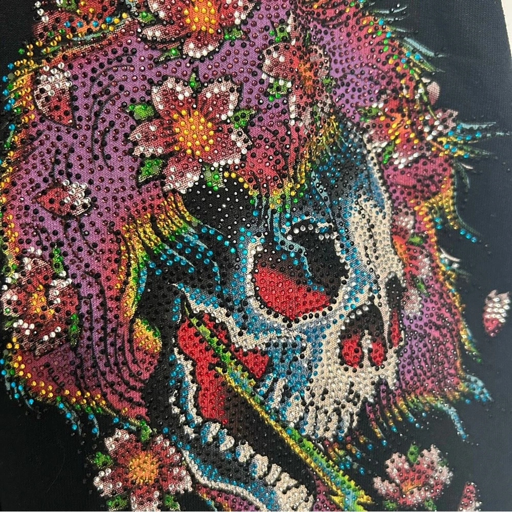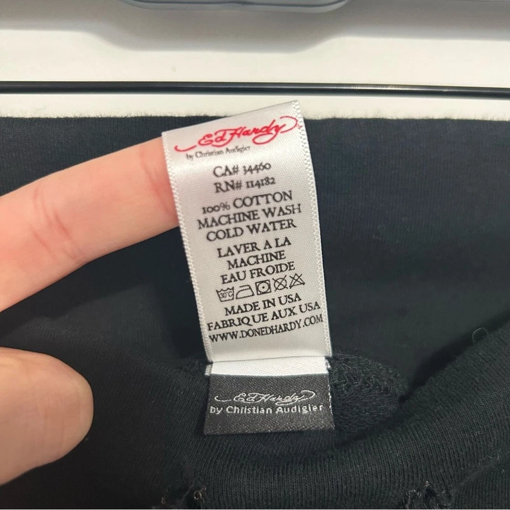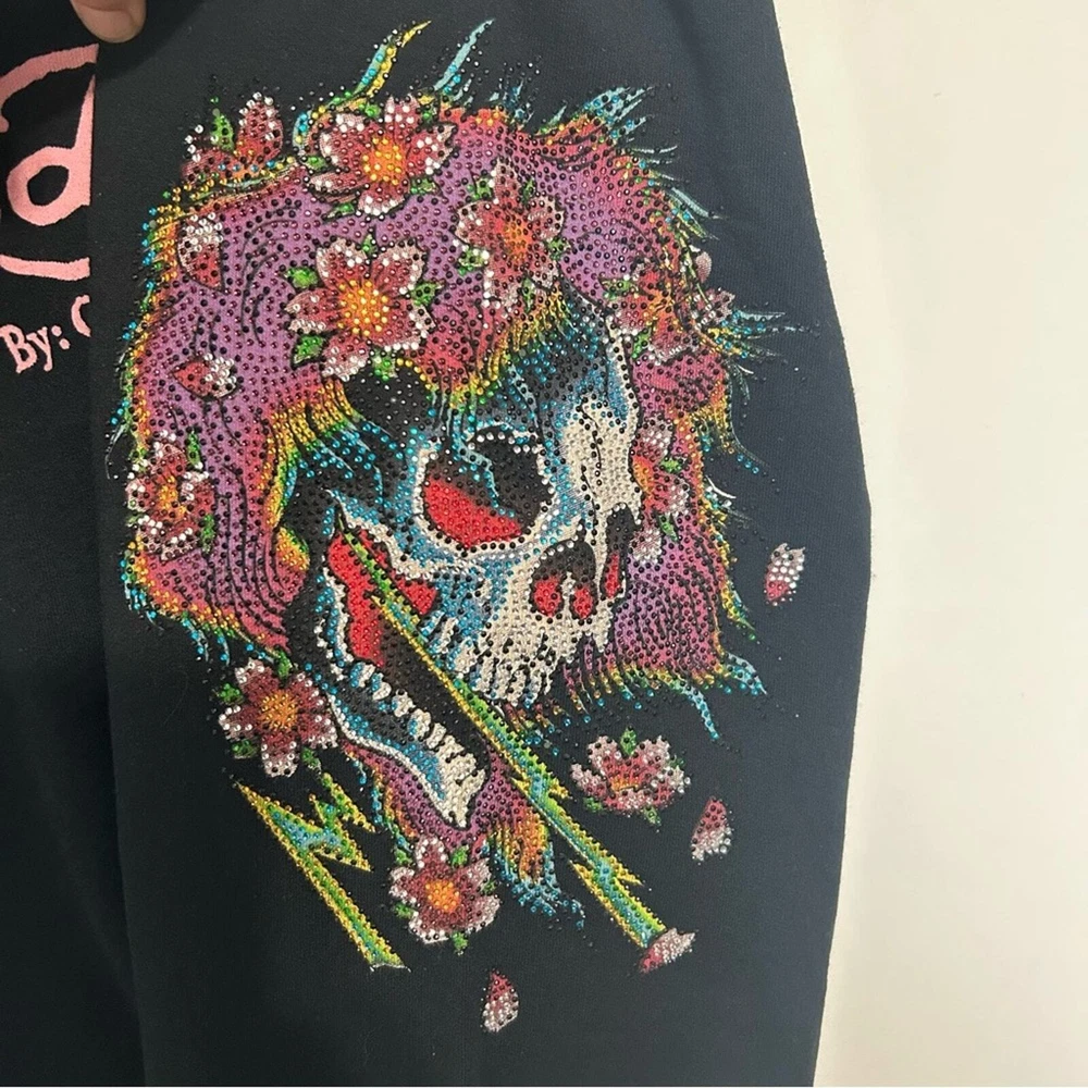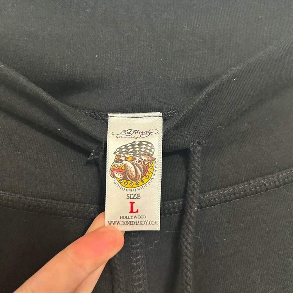 Women’s pants, lounge pants, sweat pants Ed Hardy Mid rise Drawstring 100% cotton Bedazzled skull design Rare vintage item, in good used PreOwned condition