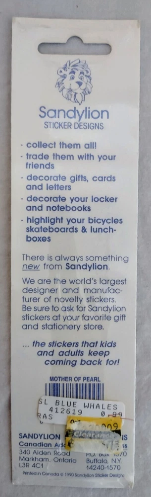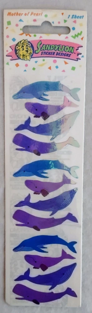 Rare Vintage SandyLion Mother Of Pearl Whales Sealed Scrapbook Stickers 1990