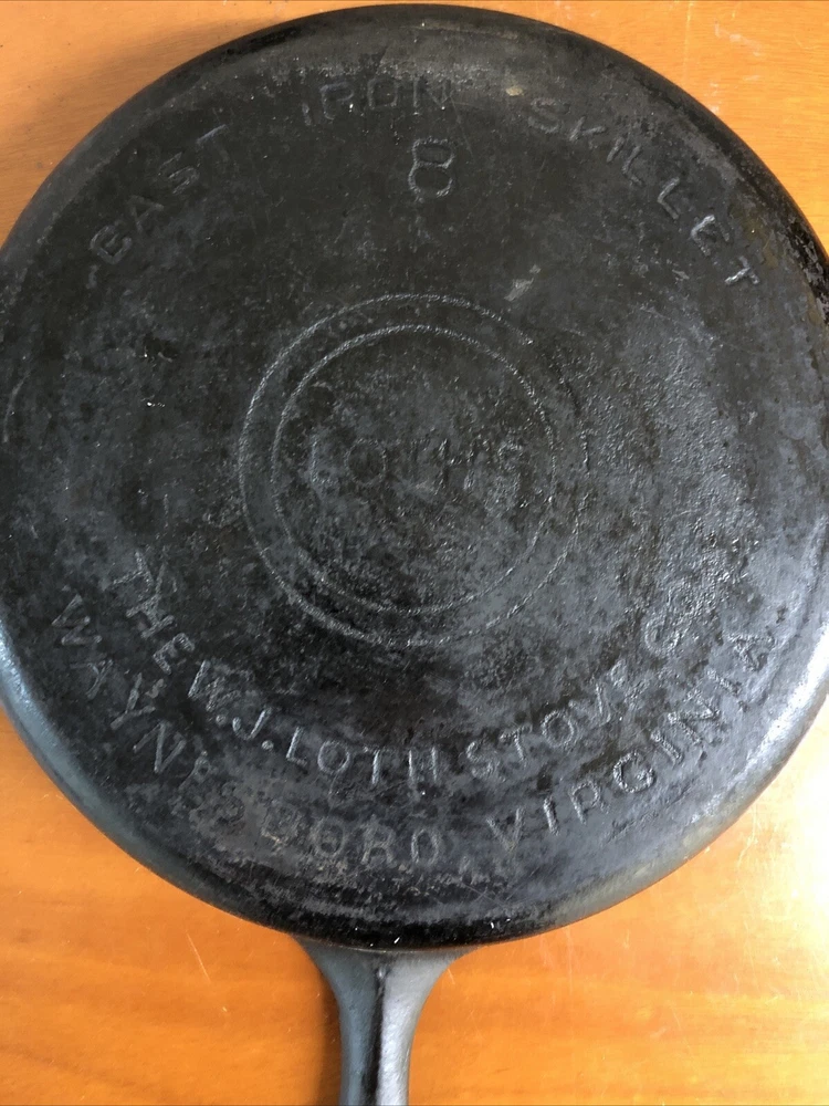 This rare W. J. Loth Stove Co. cast iron skillet is a true gem for any collector or home cook. With the ability to be used on electric, gas, and induction stovetops, it is a versatile piece for any kitchen. The skillet is a beautiful black color and has a round shape with an item diameter of 10 inches and a depth of 2 inches. This original piece was manufactured in the United States between 1920-1949 and is an antique vintage cast iron skillet. The skillet weighs 3 Lbs. 14 Oz. and has a capacity of 8. It comes with a skillet/griddle set and is compatible with all types of ovens. This Loth’s brand skillet is a rare, unique and valuable addition to any collection. See photos for condition but pan is in good shape for age and stamping on bottom is still legible. Sits flat! * All proceeds benefit hospice patients
