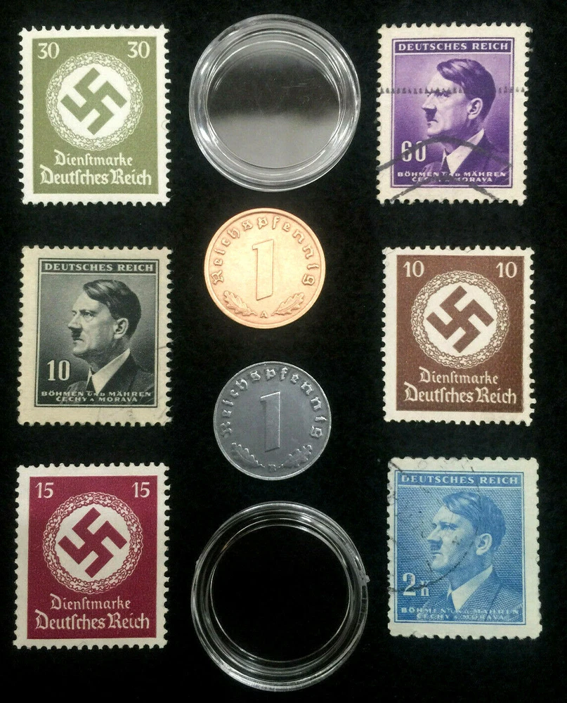 Rare WW2 German Coins & Stamps Set Of Historical Artifacts - Collectors Set You will get all that is shown in the picture : WWII 1 Reichspfennig copper coin (1937 - 1940) WWII 1 Reichspfennig zinc coin (1940-1943) WWII 3 German Random Picked Circulated stamps WWII 3 German Random Picked Unused stamps Two coin capsules. These are rare World War 2 historical German coins. These are stock pictures but you will get coins in the similar condition but of different mint mark. These coins were minted in Germany between 1936 and 1944 during World War II, these coins are an emergency issue type. You will receive 3 random picked circulated stamps in the similar condition, the stamps may have postage marks at a different place and you will receive 3 random picked unused stamps. Mint Marks A - Berlin, Germany B - Vienna, Austria (Wien) D - Munich, Germany (Munchen) E - Dresden, Germany (Muldenhutten) F - Stuttgart, Germany G - Karlsruhe, Germany J - Hamburg, Germany Imagine holding a piece of history in your hands!!! Note : Stock Photo . Actual coins may vary in terms of year and mint but all in perfect/similar condition. Please let us know if you have any question about this item.