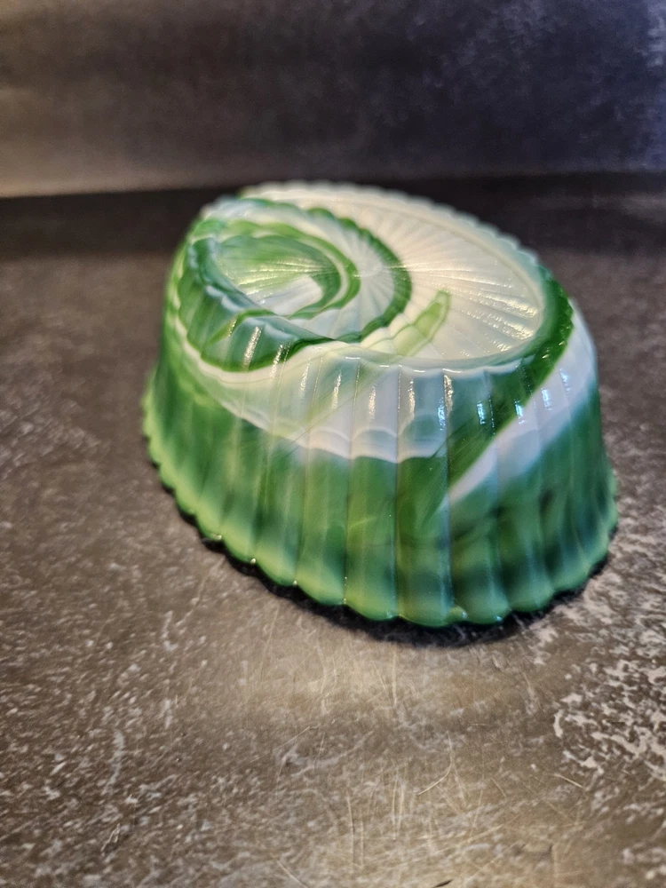 pristine condition Crafted with care, the Westmoreland Cat on Nest figurine is a treasure from the United States, showcasing the timeless beauty of slag glass. The piece features a glossy finish that highlights its green and white hues, bringing a touch of elegance to any collection or display. Measuring at a charming 4 inches in height and 5.5 inches in length, this decorative item is a testament to the artistry of the late 20th century. The collectible nature of this piece is evident in its craftsmanship, making it a must-have for enthusiasts and connoisseurs of vintage art glass. Its impressive backstamp confirms its authenticity as an original Westmoreland production, ensuring that you possess a genuine article of historical value. Adorn your space with this rare and exquisite figurine and enjoy the sophistication it brings to your home decor.