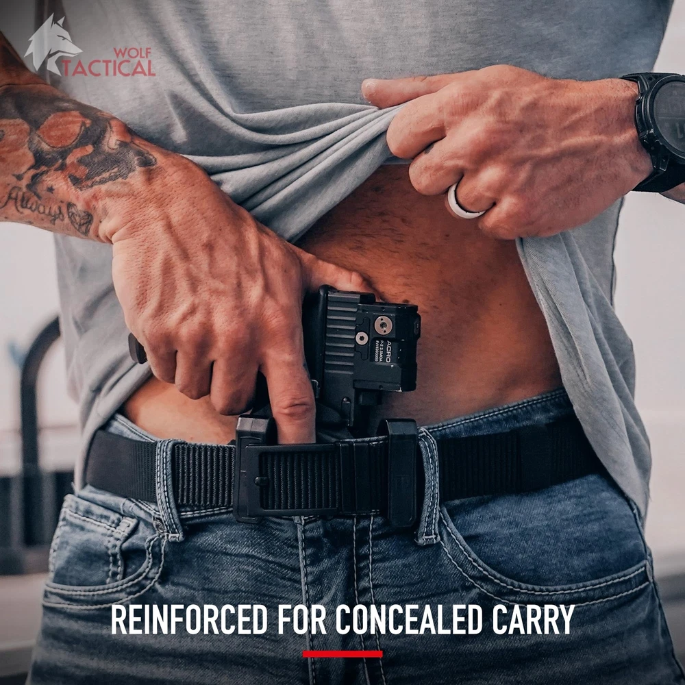 Description 's Ratchet EDC Belt is the perfect blend of style and function: a heavy-duty tactical belt that can be worn all day in professional settings. Perfect for tactical training, concealed carry, casual wear and more, our ratchet belt is crafted with 1.5” stiffened nylon webbing that supports heavier loads without sagging. Its ratcheting, no-holes design offers a custom fit with infinite adjustability. Be prepared and comfortable with ’s Ratchet EDC Belt! 【VERSATILE TACTICAL BELT FOR EVERYDAY USE】★ Designed for style and functionality, the Ratchet EDC Belt provides the reliability and support needed for concealed carry, holsters, mag pouches, and more, all while maintaining a sleek, professional appearance. 【INFINITELY ADJUSTABLE】★ Say goodbye to traditional belt holes—our ratchet belt offers a custom fit with its no-holes, infinite adjustability. The micro-adjustable track system ensures the belt stays snug, whether you're carrying tactical gear or just need a comfortable, everyday belt. Loosens with the press of a button. 【DURABLE AND RUGGED DESIGN】★ Built to last, this ratchet belt is constructed from high-quality, reinforced nylon that can endure the toughest conditions. Its strong, no-sag design securely holds holsters, magazine pouches, and other essential gear, making it a reliable choice for everyday wear and tactical situations. 【SUPERIOR COMFORT AND SUPPORT】★ Crafted with stiffened 1.5" nylon webbing, this belt offers a comfortable yet supportive fit, making it ideal for long days on duty or everyday wear. The premium nylon material is designed to withstand heavy loads while ensuring maximum comfort. 【TRUSTED QUALITY】 ★ gear is crafted for those who conquer challenges and never settle for less. Proudly based in the USA, our products embody determination, unity, and an unyielding drive for excellence. Equip yourself with gear designed to empower a lifestyle of resilience and achievement. Shop with confidence.