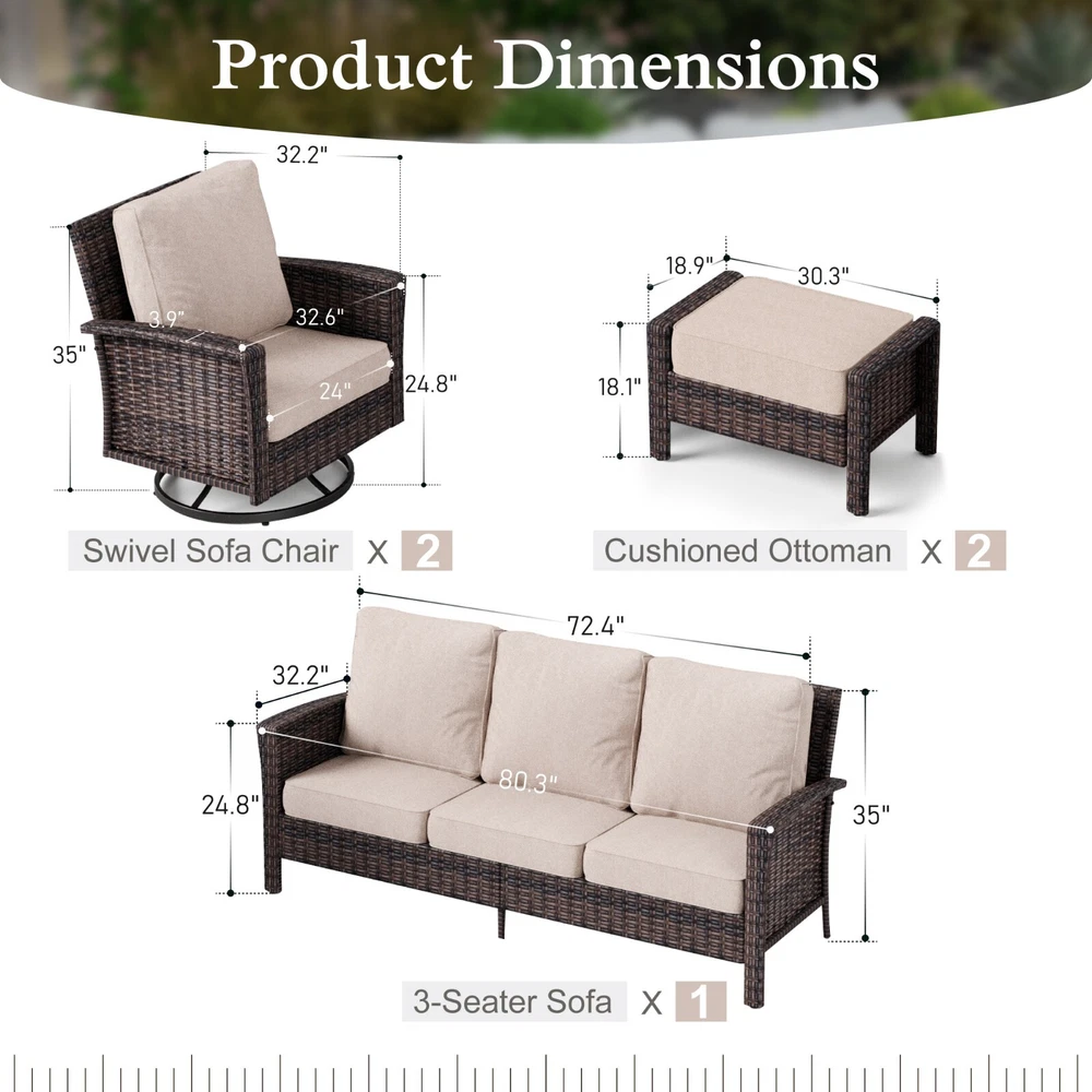 Product Description: Transform your outdoor space with our stylish Rattan Furniture. This elegant rattan sofa combines comfort and charm, making it the perfect addition to your patio or garden. Designed for relaxation, this furniture set invites you to unwind while enjoying the fresh air. The durable rattan material is not only weather-resistant but also easy to clean, ensuring that your outdoor oasis stays beautiful for years to come. Enjoy gatherings with friends and family or simply relax in style on our cozy rattan sofa. Elevate your outdoor living experience today! Feature: Made from beautifully woven rattan , this Rattan furniture combines style and durability. The natural look of the woven rattan adds a touch of elegance to your patio, garden, or balcony, making it perfect for relaxing with friends or family. The rattan frame ensures that your furniture is built to last, providing comfort for years to come. Easy to maintain and weather-resistant, our Rattan Furniture is the ideal choice for any outdoor setting. Elevate your home today with this luxurious and functional addition! Our products come with 1-year-warranty, ensuring that there will be no defects in materials and workmanship under normal use. We do our best to hear from customers and update our products. If you have more problems, please be free to contact us