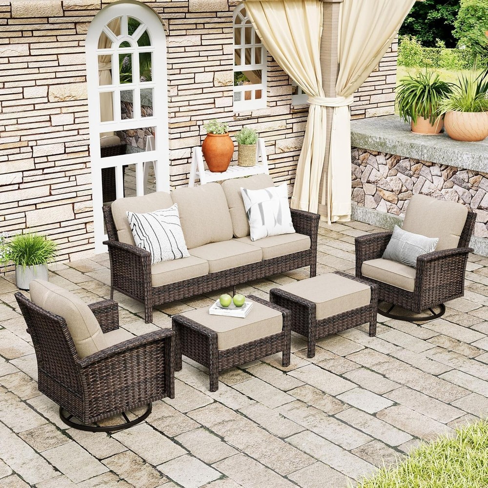 $ 427.687-PCS Aluminum Patio Dining Set with Table, 4 Chairs & 2 Swivel Rockers